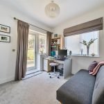 Moving through the apartment, you’ll find a modern family bathroom, designed with a sleek finish, as well as two separate, well-proportioned double bedrooms. The principal double bedroom includes inbuilt wardrobes, while the second bedroom also includes inbuilt storage and features a door leading directly to a private garden.