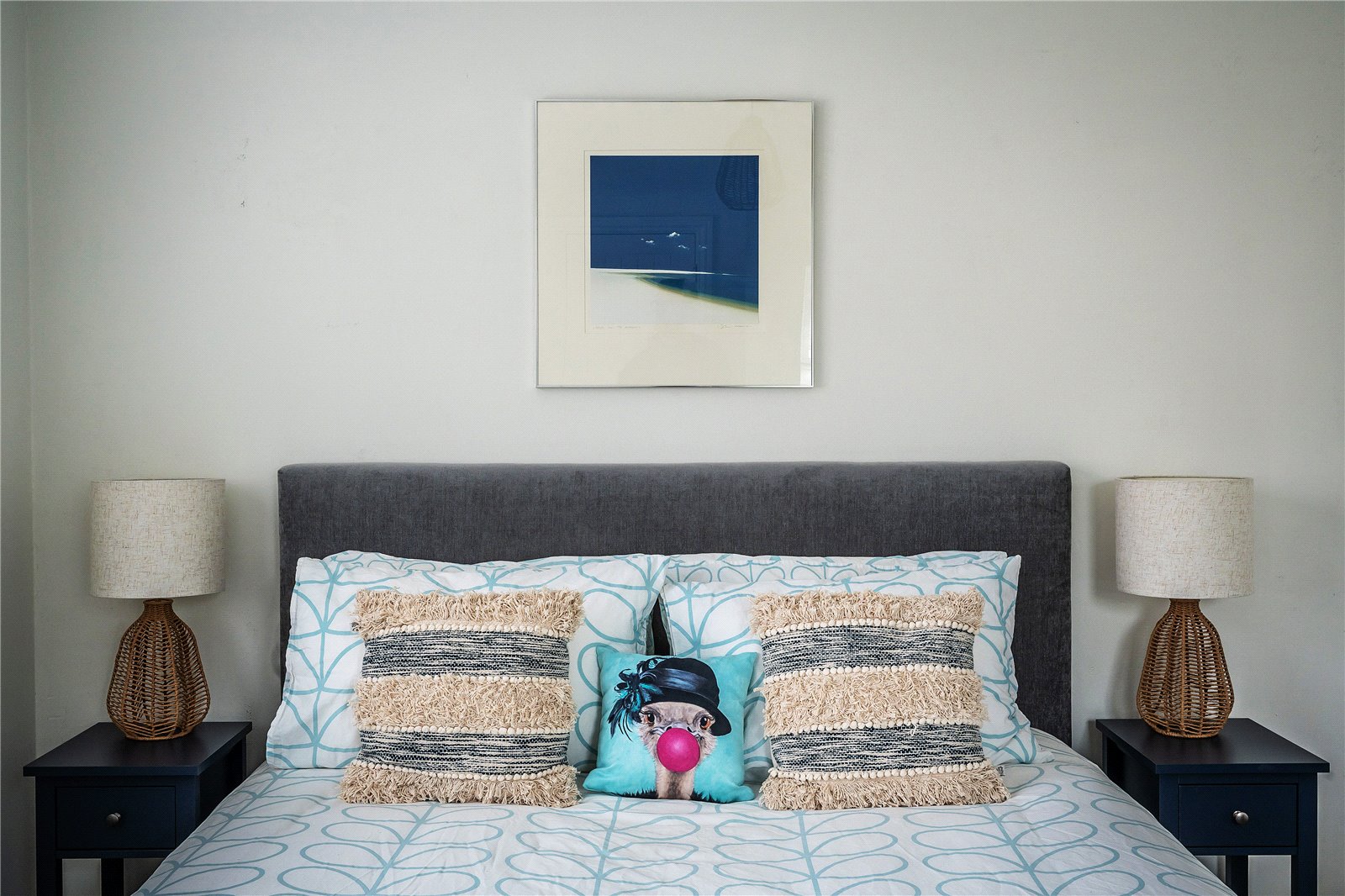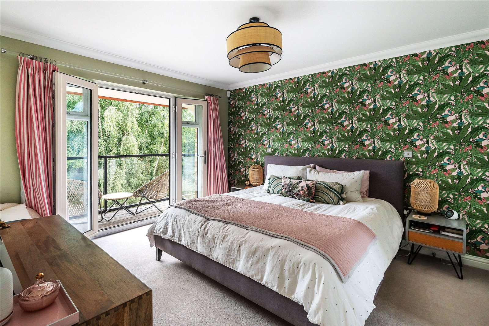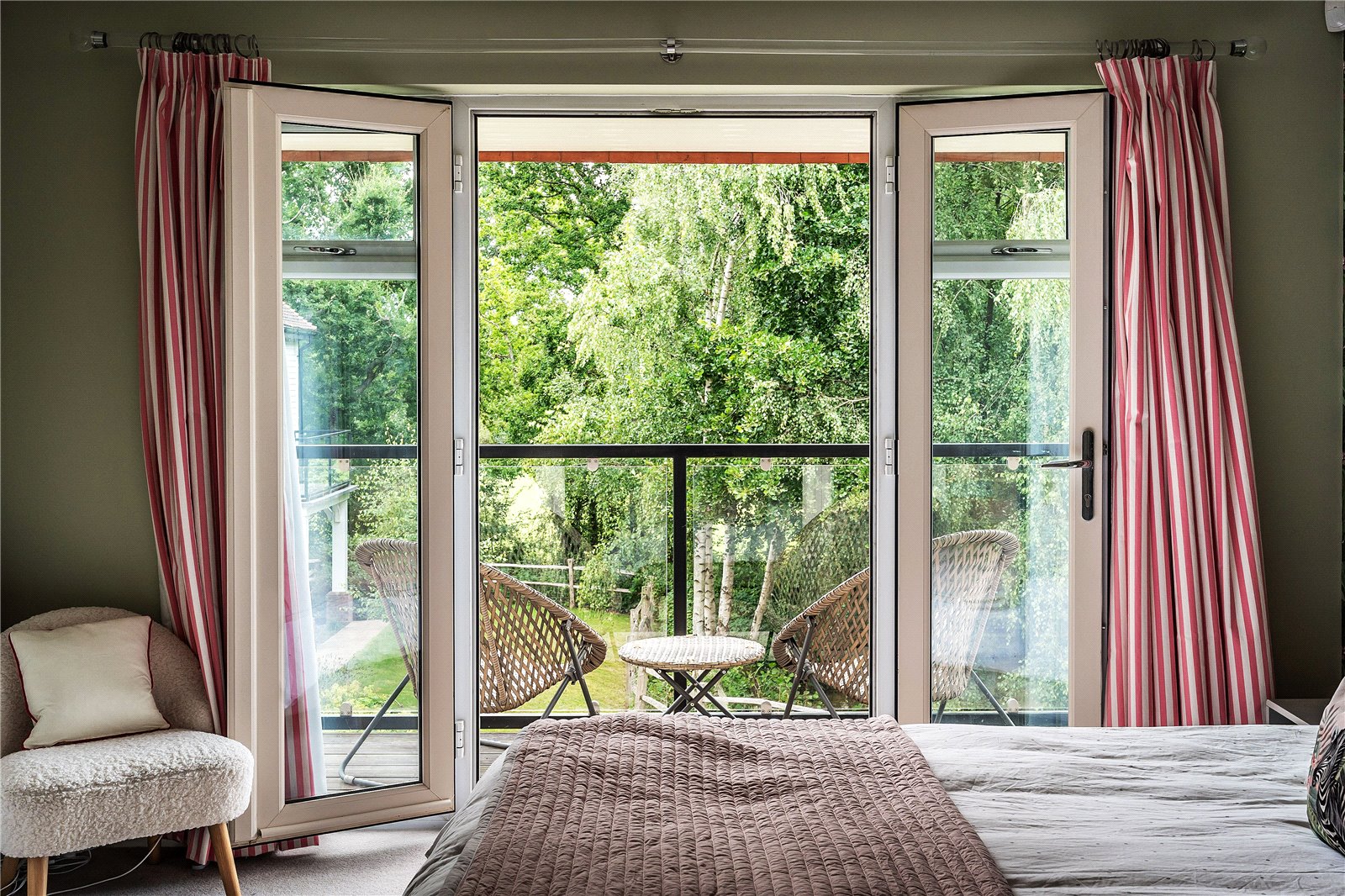 The principal bedroom is simply splendid with high ceilings and a set of French doors leading out to the west-facing balcony with views over the pond. A beautifully appointed Porcelanosa en-suite bathroom with separate shower and a twin set of built-in wardrobes complete this superb principal bedroom suite.