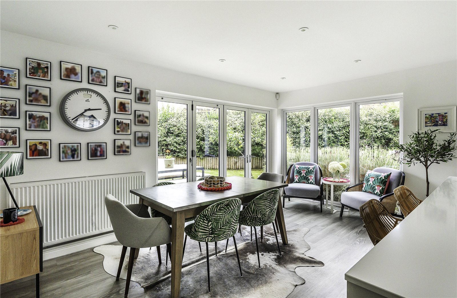 A separate dual-aspect family room provides an additional reception room. A study, cloakroom and under-stairs storage are all added extras to the ground floor space.