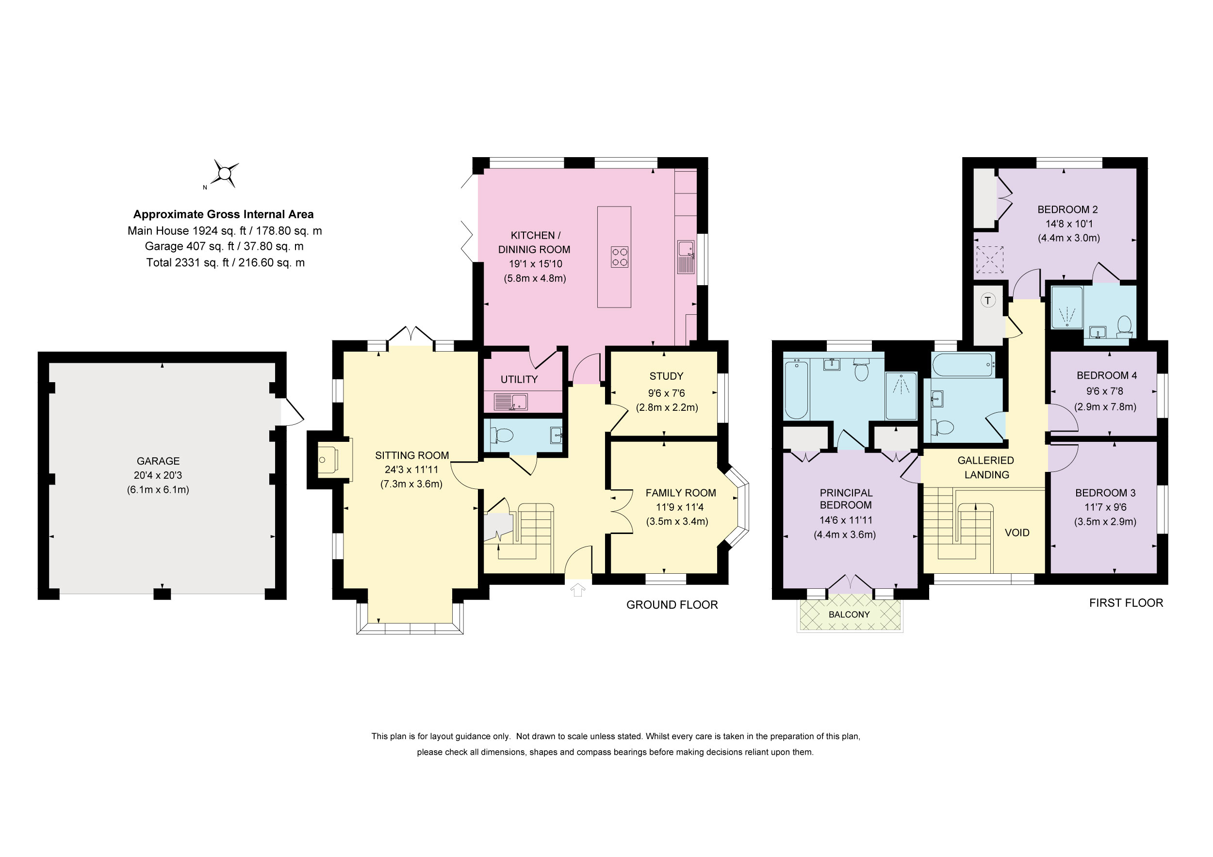 - Guest bedroom suite, two further bedrooms and a family bathroom