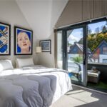 The second double bedroom also has floor-to-ceiling windows and a triple set of built-in wardrobes; this charming 2nd bedroom also has a private balcony and en-suite shower room.