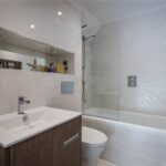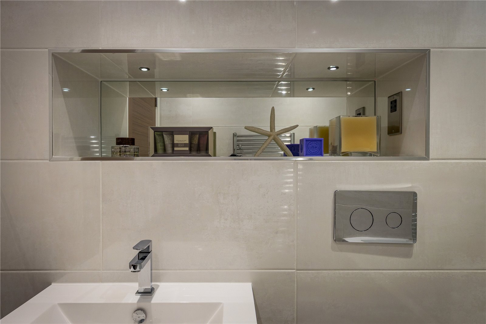 The master bedroom is beautifully finished with a bespoke fitted wardrobe. Floor-to-ceiling windows and a door to the balcony flood the room with light. There is a beautifully appointed contemporary en-suite bathroom, which has been designed with meticulous attention to detail. Incorporating Porcelanosa fittings, a vanity unit with a bespoke under-unit, a walk-in shower and a heated towel rail.