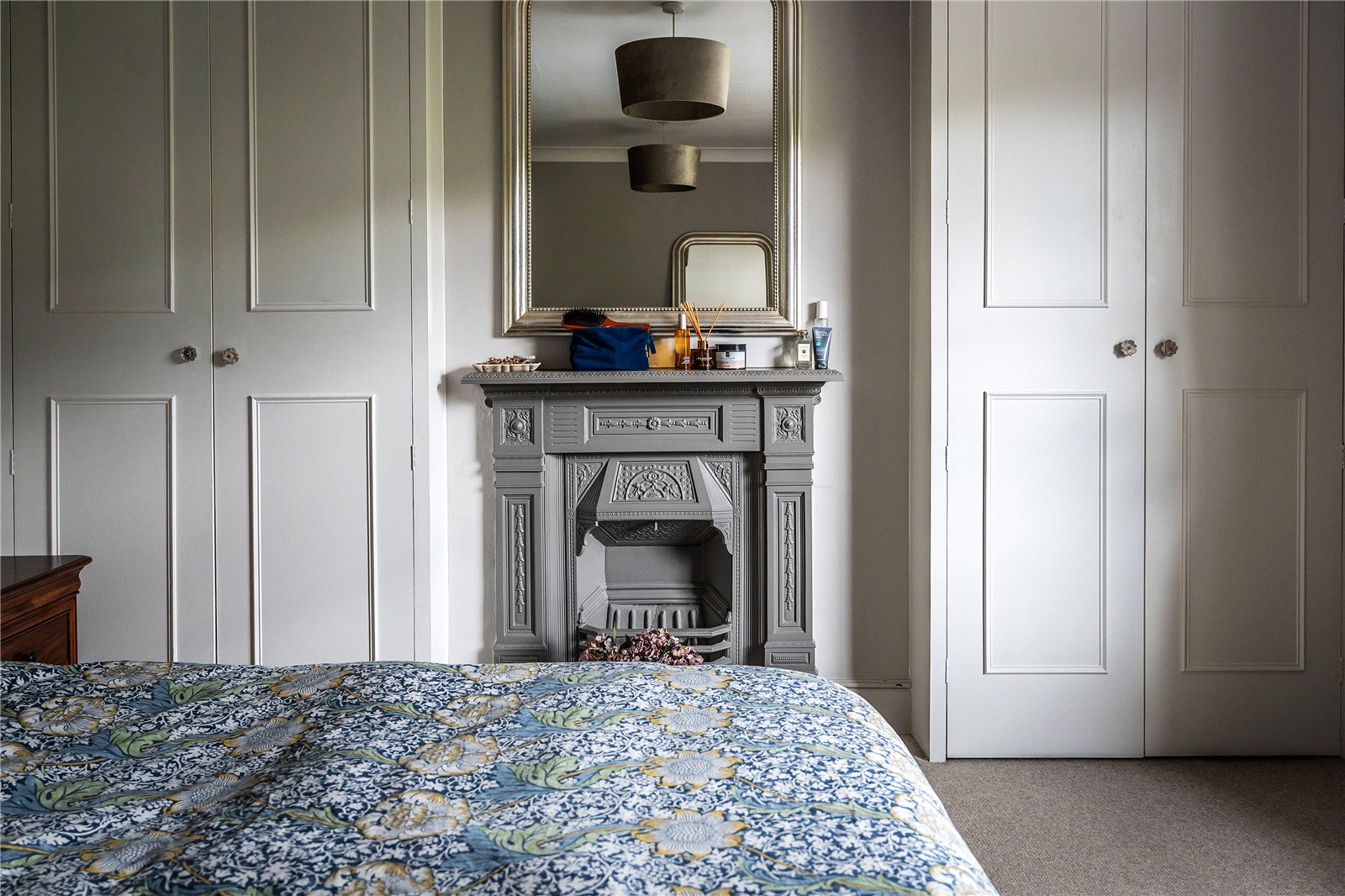 Set behind an elegant double-fronted facade, the property showcases high ceilings, original fireplaces, and generously proportioned living spaces across three floors. At its heart is a stunning 32’ (10m) kitchen/breakfast room - an inviting space for cooking, dining, and relaxing. A large roof lantern floods the area with natural light, and French doors provide direct access to the west-facing garden. Adjacent are a utility room and cloakroom for added convenience.