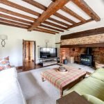 The ground floor comprises of two reception rooms with inglenook fireplaces, fitted and well equipped kitchen with AGA (LPG gas) and separate cooker leading to dining room featuring exposed beams and double doors leading out into the gardens and over stunning countryside.