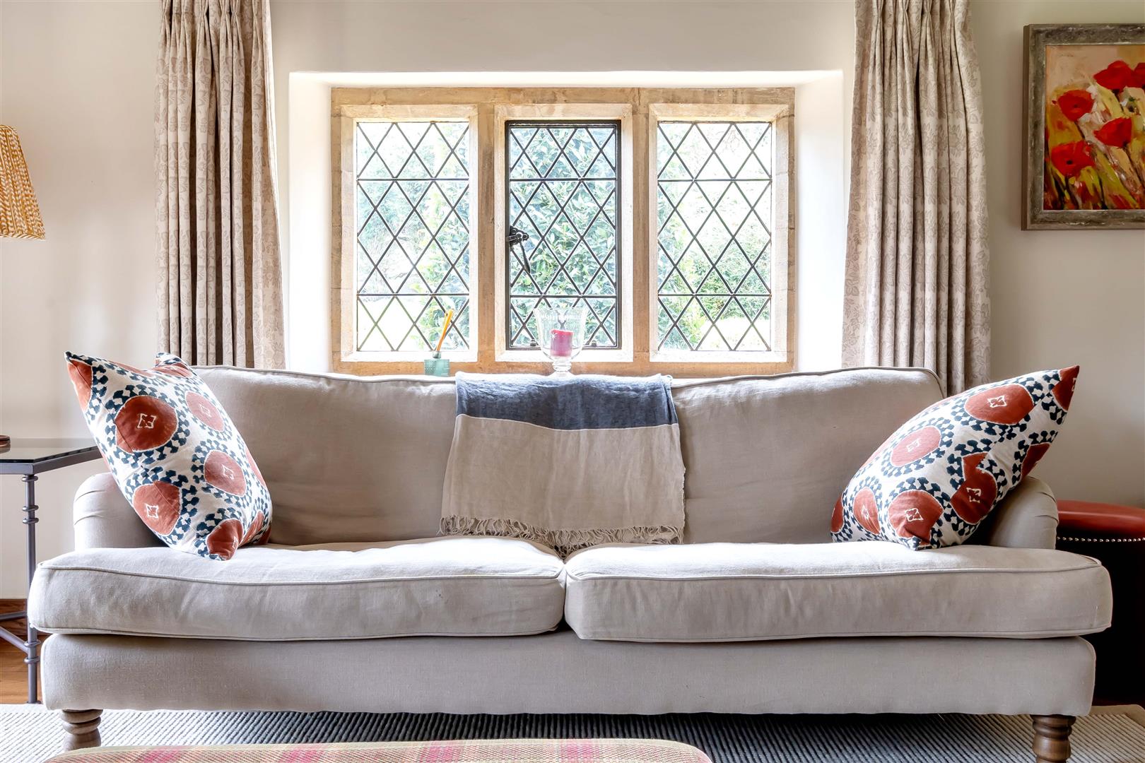 The property features a beautifully maintained large garden with views out over the countryside and onto Blackdown.