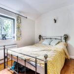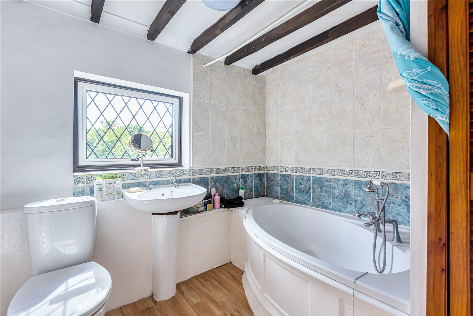 On the first floor is the master bedroom and a bathroom with an electric shower over the bath.
