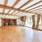The entrance hall leads to a kitchen/breakfast room with pantry and a cloakroom. There is an impressive 48 ft. vaulted reception room with exposed beams, a terrific inglenook fireplace and a second log burner as well as access to the rear garden.