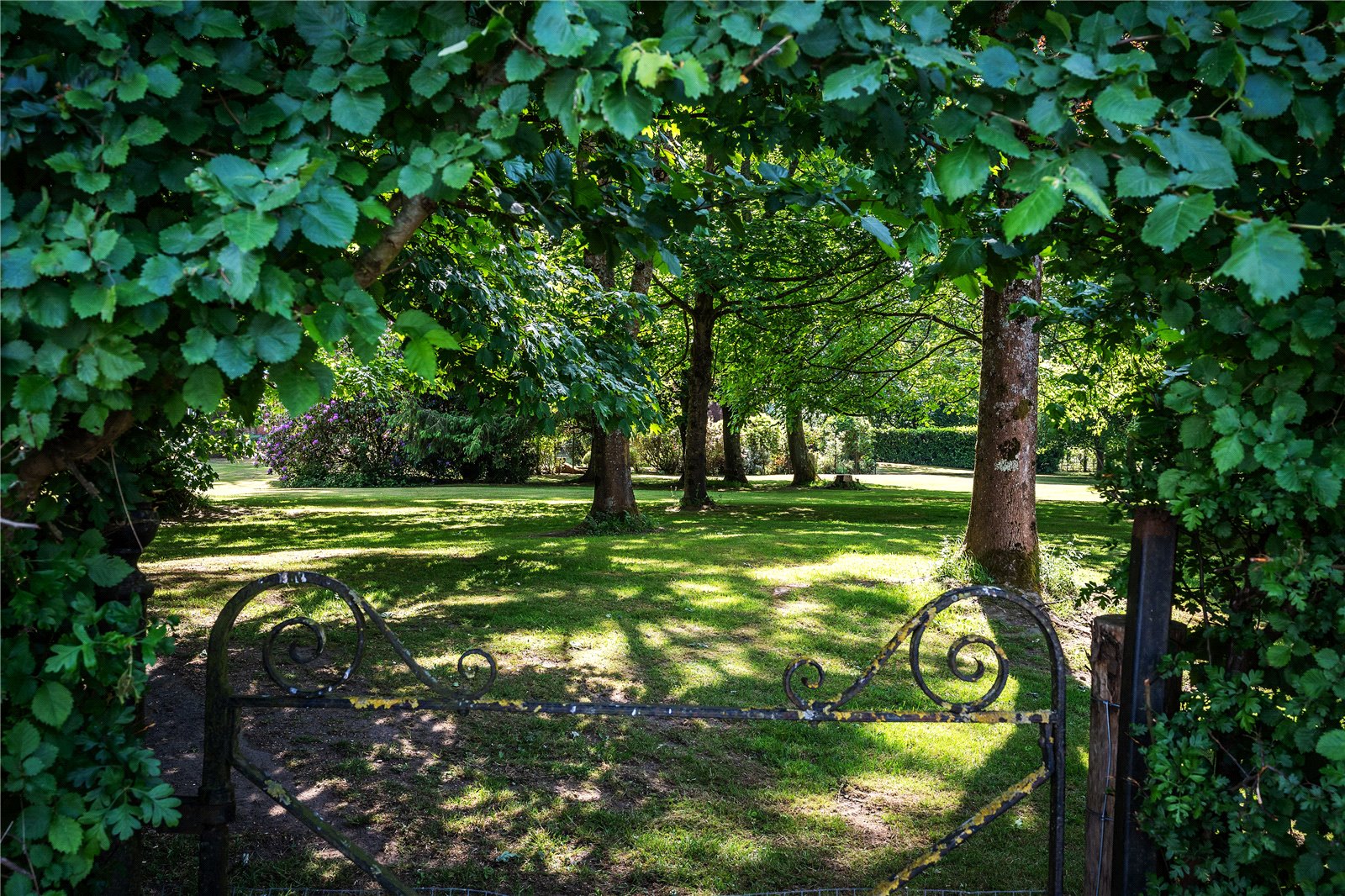 Passing through the automated gates, the private driveway unfolds to reveal sweeping views through mature trees and across the estate’s parkland grounds. The sense of arrival is undeniable as you approach this magnificent country residence.