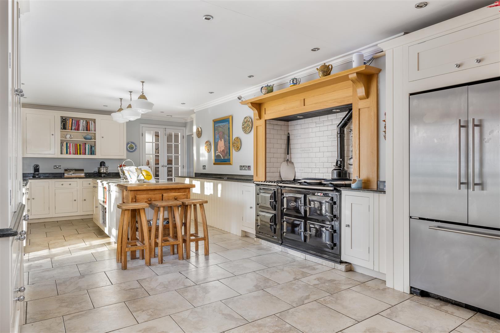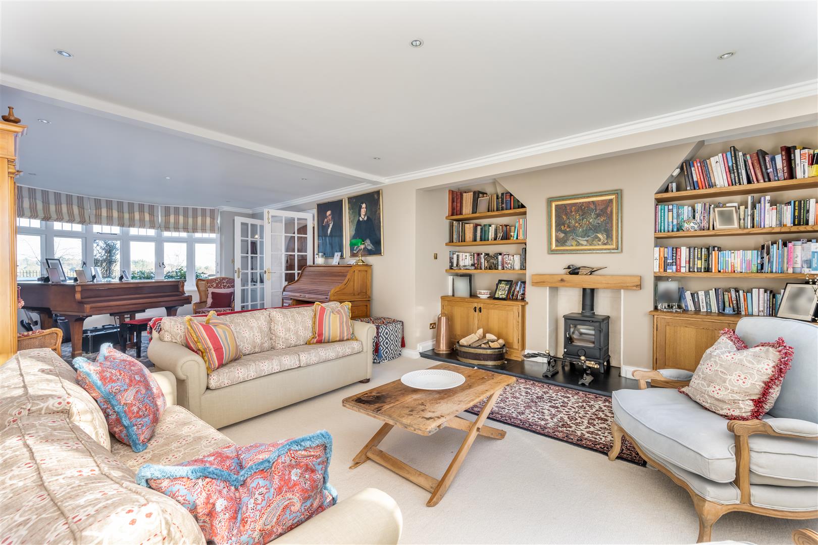 Large entrance hall with wood burning stove, triple aspect reception room with wood burning stove, dining room with feature fireplace, kitchen breakfast room with gas Aga, family room, study (bed 6), en-suite shower room, utility room, cloakroom.