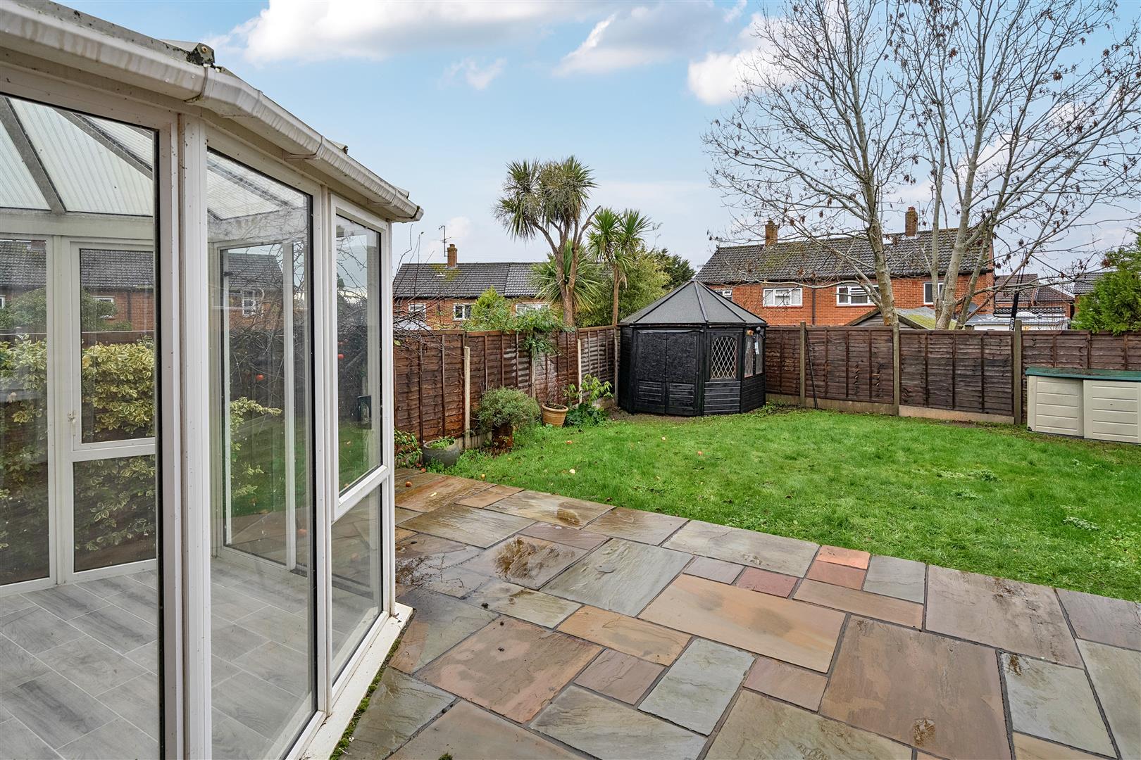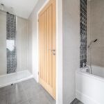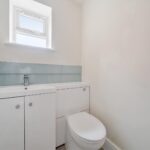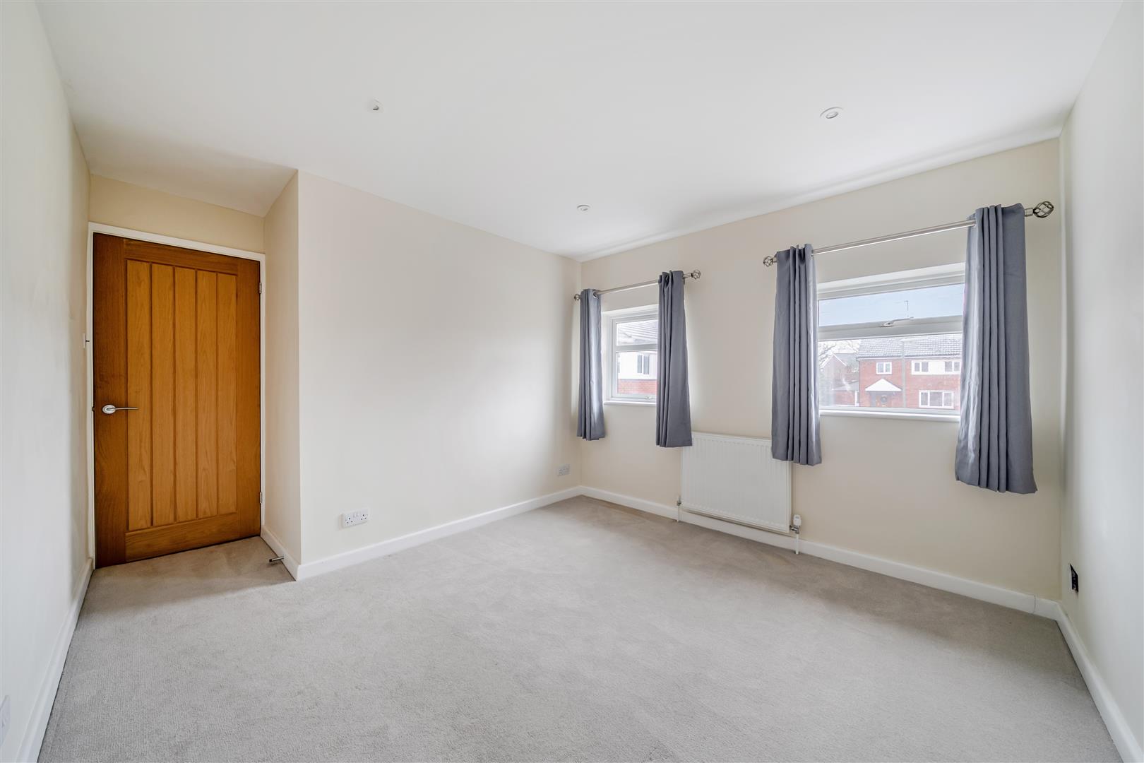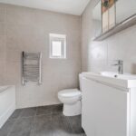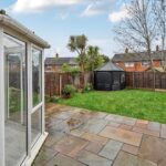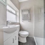 Upstairs, the first floor offers three bedrooms, all accessed from a central landing. You will find the main bedroom with ensuite shower room and a second double bedroom. A third, smaller bedroom works well as a child’s room, guest room or study. Upstairs also includes a bathroom with separate bath and shower, and a separate WC, providing convenience for busy households.