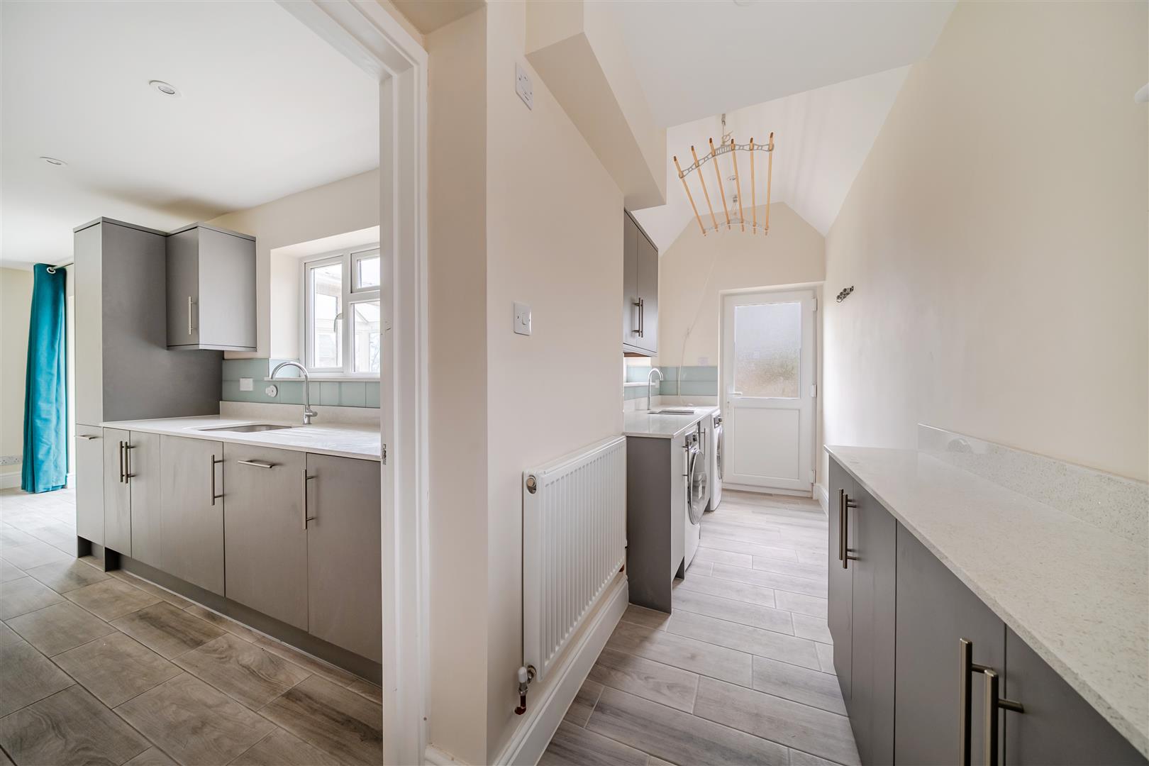 The ground floor centres around a spacious kitchen/dining room, which stretches the width of the house and provides plenty of room for cooking, dining, and everyday living. From here, doors open into a bright conservatory, creating an inviting space that connects directly to the garden. At the front of the property is a generous reception room. A useful utility room sits just off the kitchen, along with a downstairs WC, with external access to the garden.