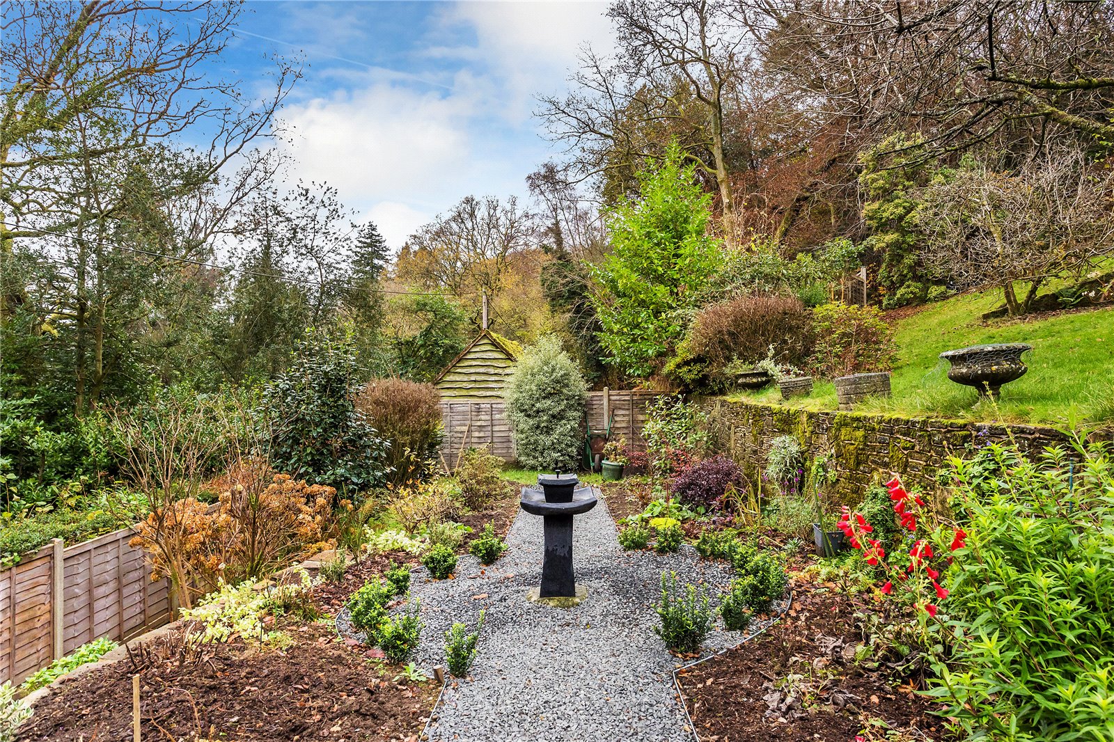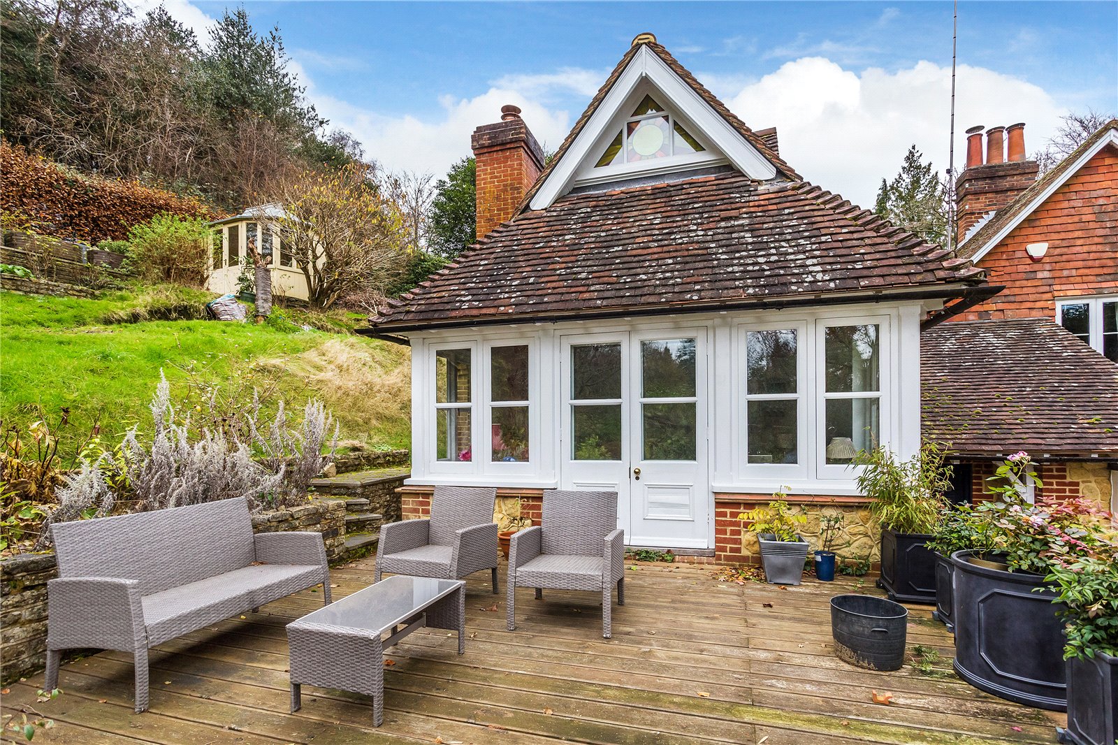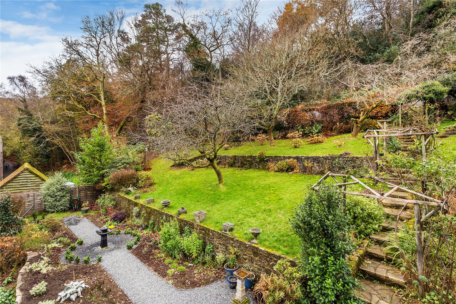 - Beautiful South facing gardens with an upper terrace and summer house
