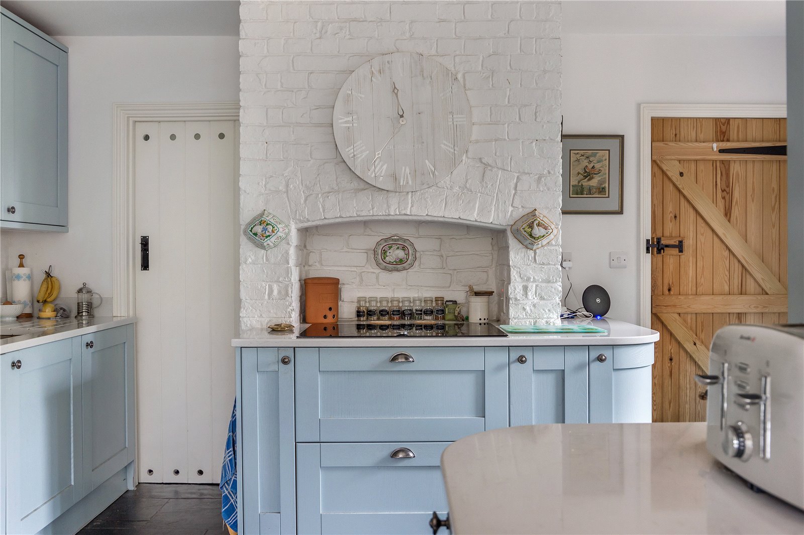 This charming cottage has an abundance of ground floor reception space. The main drawing room has a fabulous, vaulted ceiling triple aspect windows and French doors to a sun deck to enjoy the Southerly facing aspect and garden views. A newly installed contemporary wood burning stove is the perfect for those cold winter evenings. The kitchen has been fully renovated with coloured shaker style units, stone worksurfaces and fitted appliances. A breakfast room with fabulous hillside views and separate utility room all add to the usable family space.