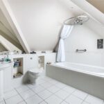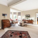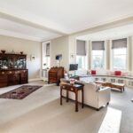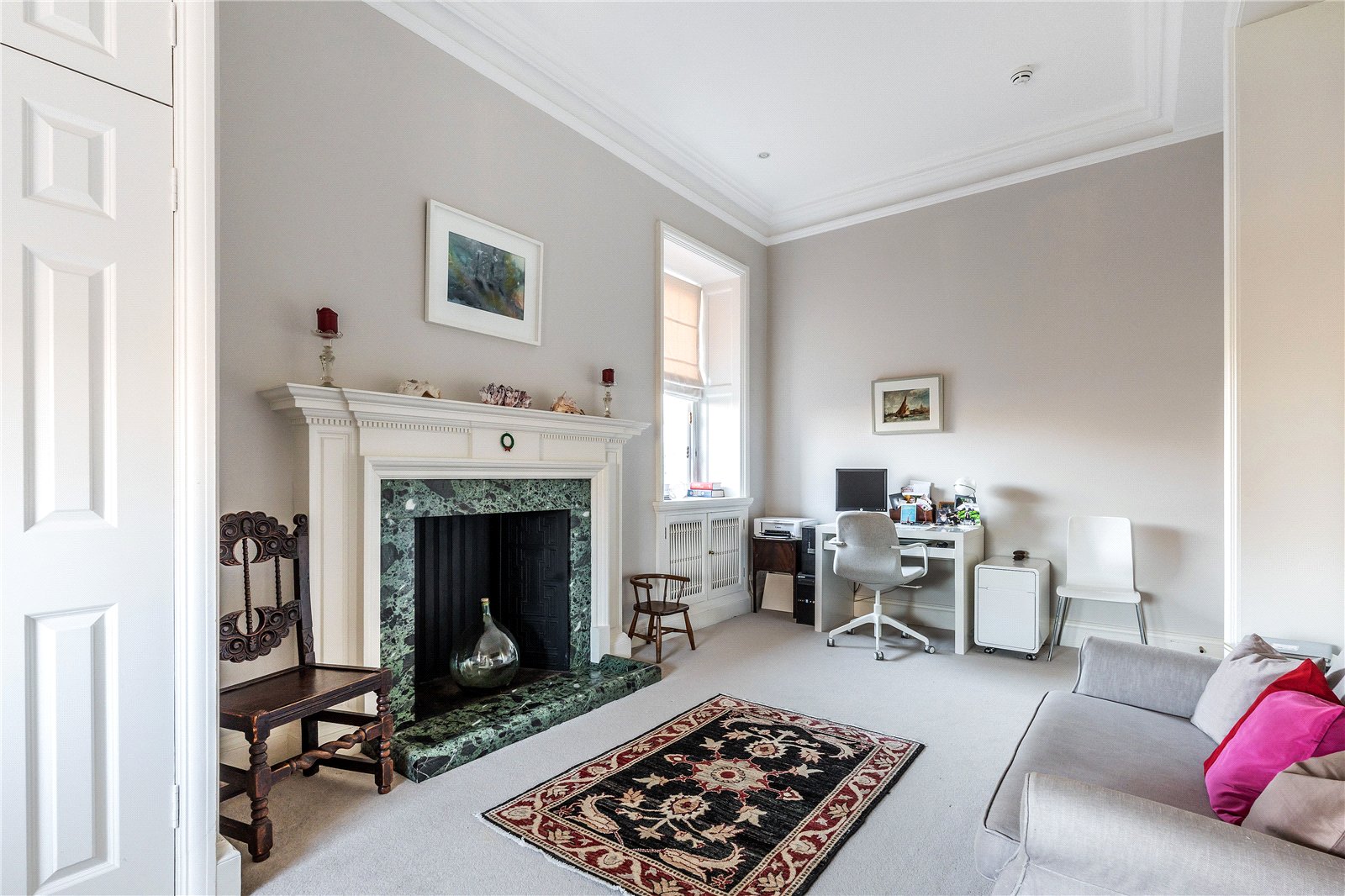 The property is approached via the hall’s communal entrance and opens into a striking drawing room of excellent proportions, ideal for both entertaining and everyday living. High ceilings and large windows enhance the sense of space and light, while the layout flows naturally through to a well-appointed kitchen/dining area, providing a practical yet sociable heart to the home.