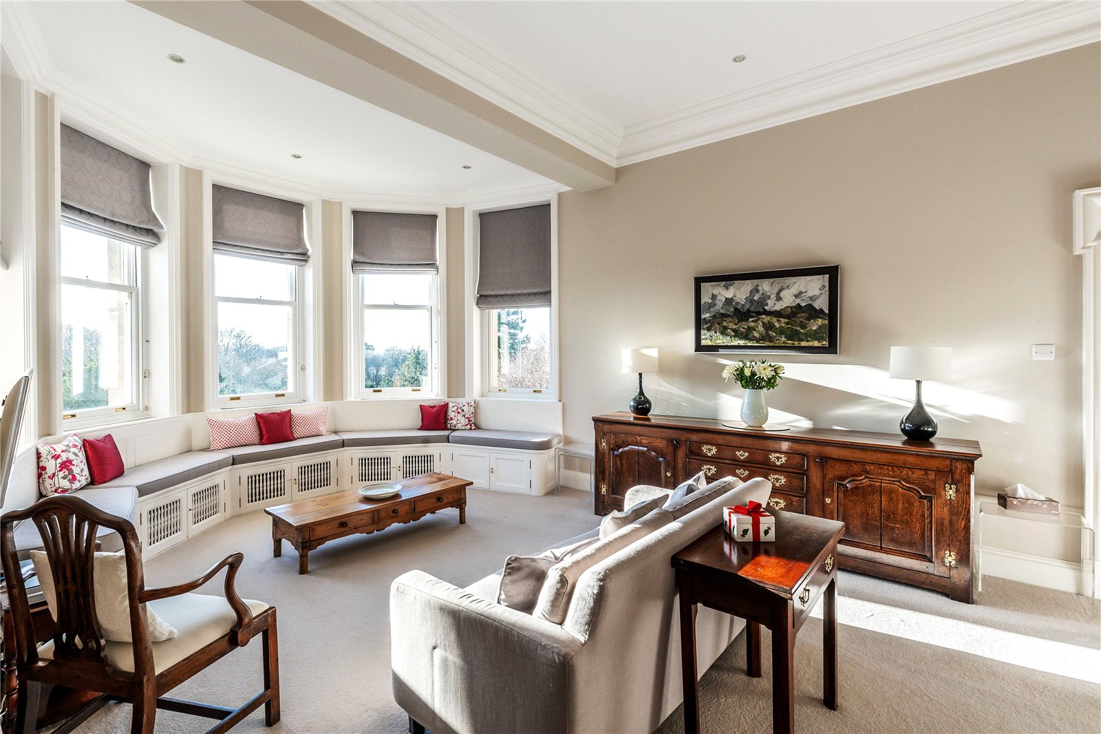 Set within the impressive and historic Busbridge Hall, this substantial penthouse apartment offers elegant accommodation arranged over the top two floors, combining period grandeur with generous living space in a highly regarded residential setting on the edge of Godalming.
