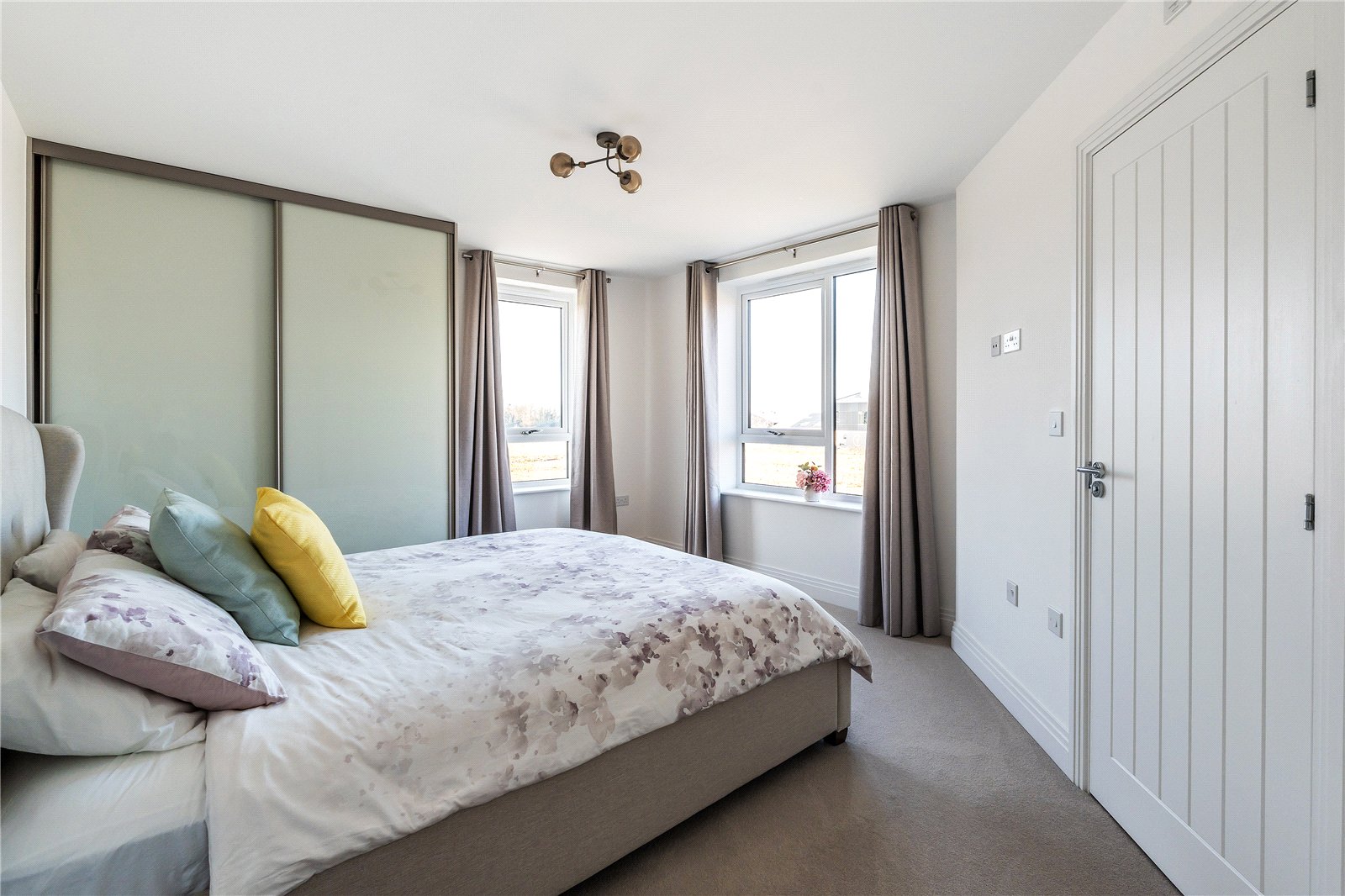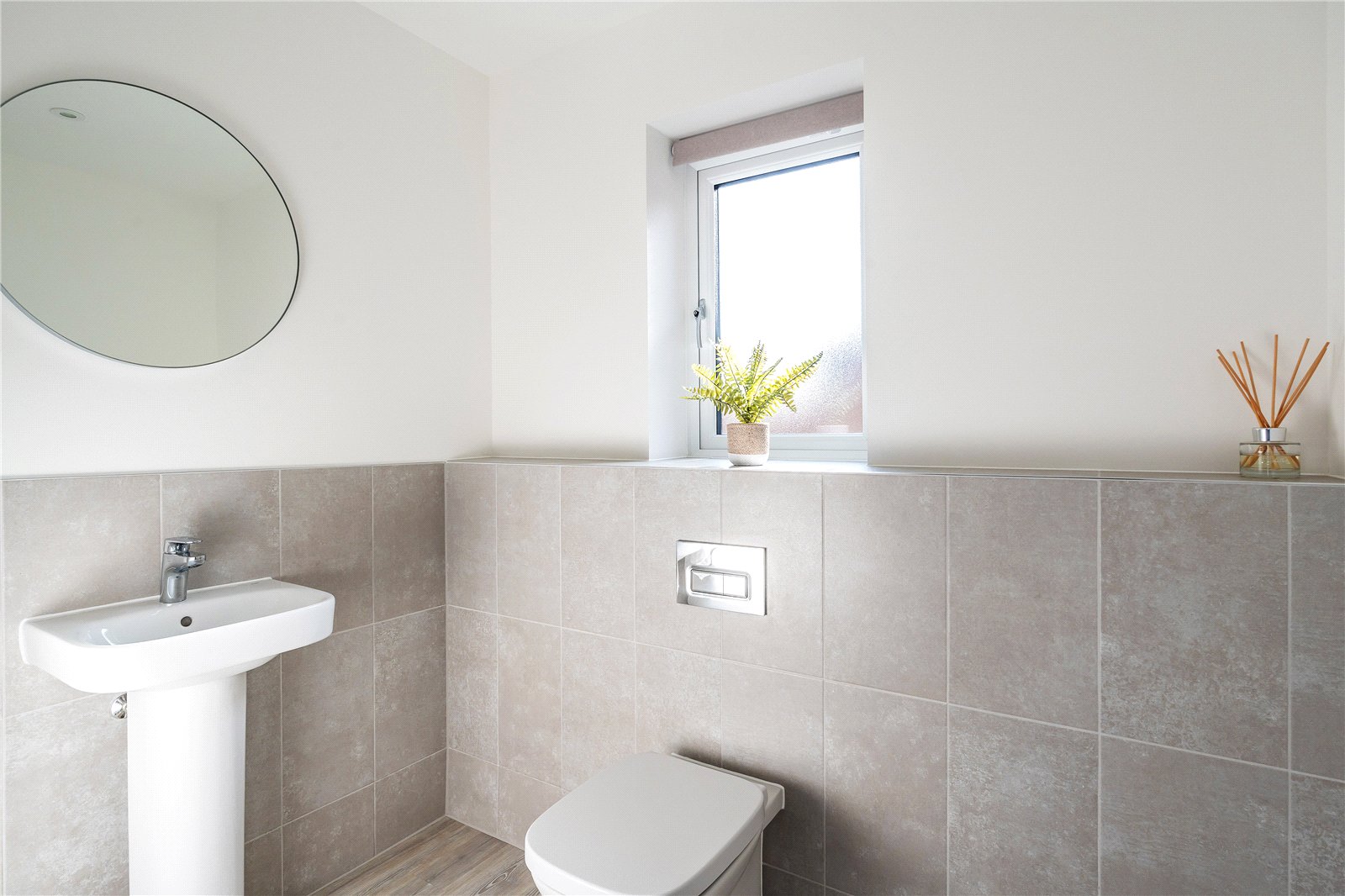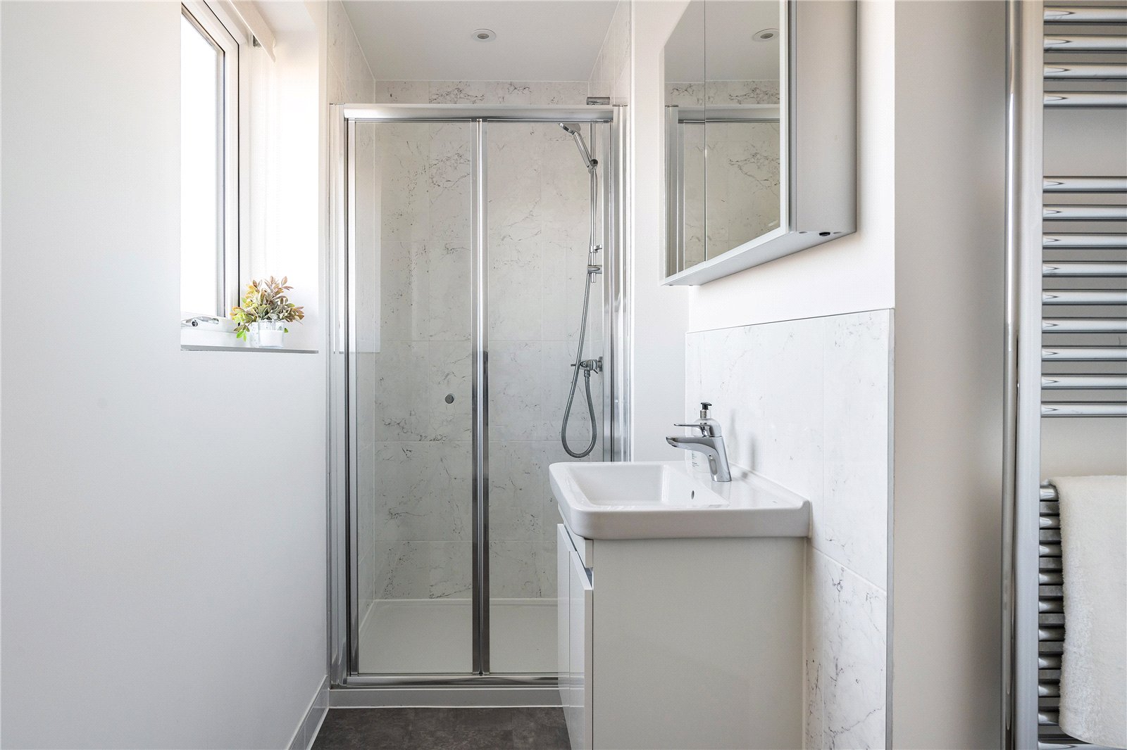 The principal bedroom enjoys a dual aspect and lovely open views, creating a calm and restful retreat. Built-in wardrobes provide ample storage, while the contemporary en-suite shower room is finished with elegant marble-effect tiling. Three further bedrooms offer excellent flexibility for family life. Two generous doubles are ideal for teenagers or visiting guests, while the fourth bedroom, currently arranged as a spacious single, could easily serve as a nursery or home office. These rooms share a beautifully finished family bathroom, featuring stylish grey stone tiling, a modern floating vanity unit and a full-size bath with overhead shower. A recessed linen cupboard on the landing adds further practical storage.