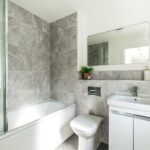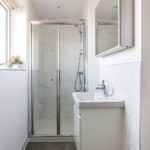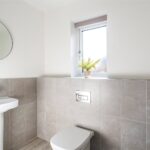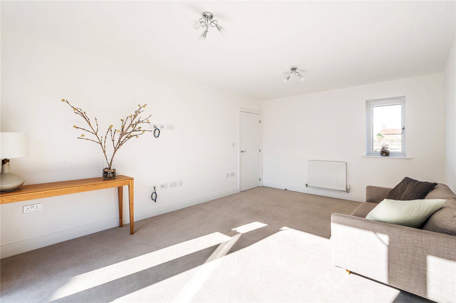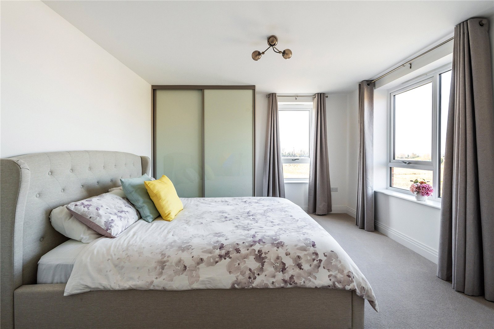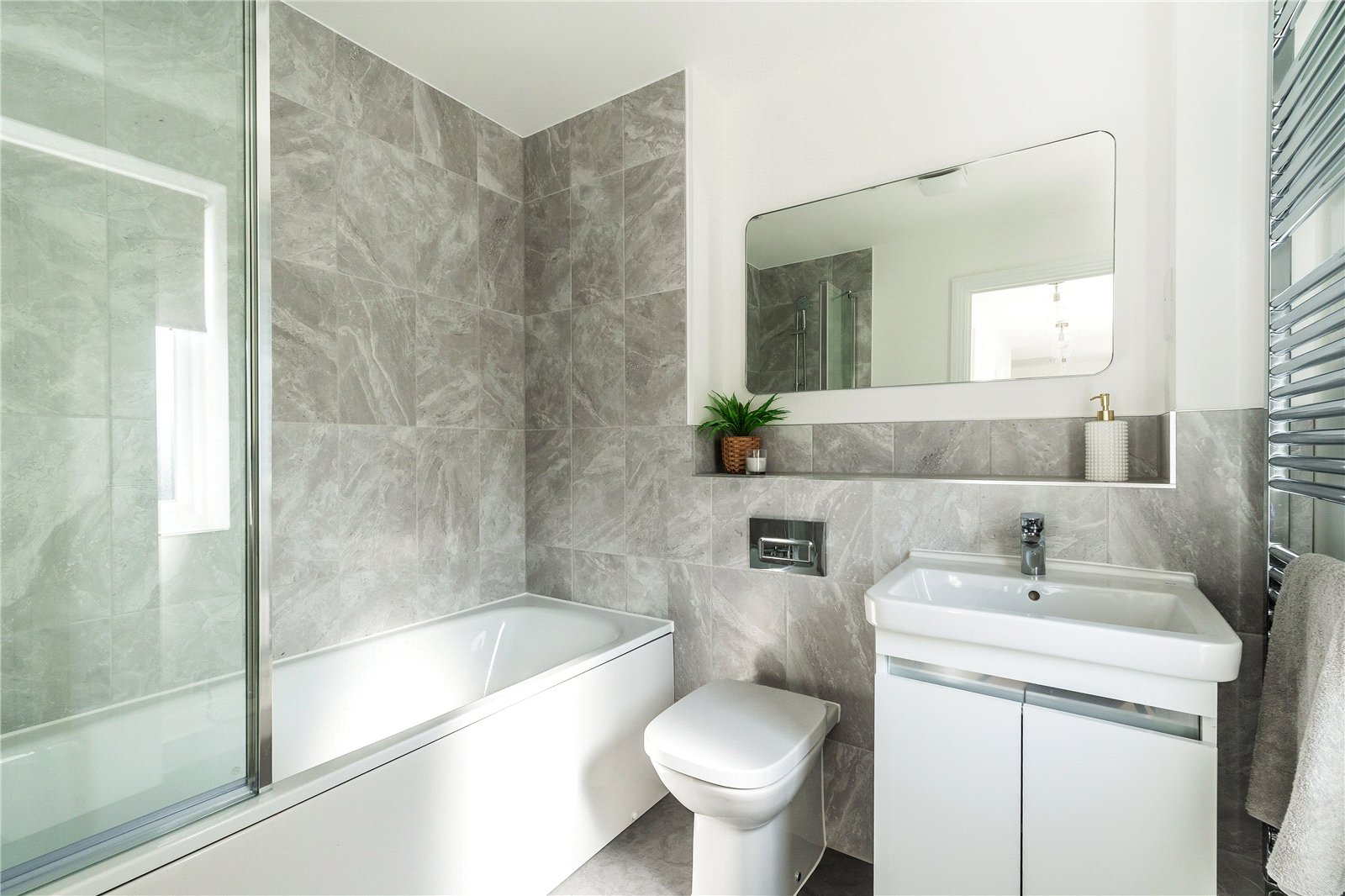 The principal bedroom enjoys a dual aspect and lovely open views, creating a calm and restful retreat. Built-in wardrobes provide ample storage, while the contemporary en-suite shower room is finished with elegant marble-effect tiling. Three further bedrooms offer excellent flexibility for family life. Two generous doubles are ideal for teenagers or visiting guests, while the fourth bedroom, currently arranged as a spacious single, could easily serve as a nursery or home office. These rooms share a beautifully finished family bathroom, featuring stylish grey stone tiling, a modern floating vanity unit and a full-size bath with overhead shower. A recessed linen cupboard on the landing adds further practical storage.