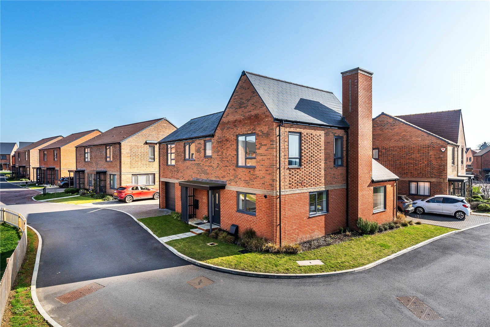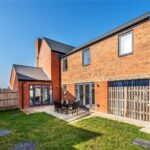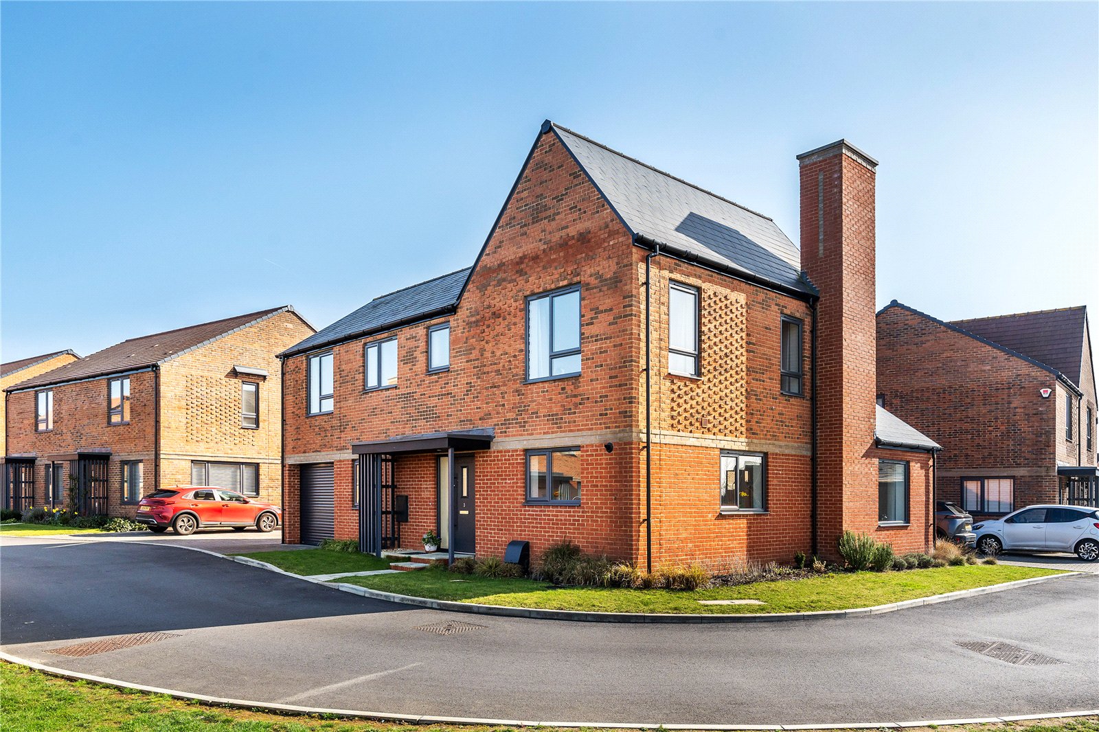 The home has been finished to an exceptional standard throughout, with a calm and cohesive colour palette of soft greys, crisp whites and warm neutral tones creating a light, elegant interior. Large windows invite natural light into every room, enhancing the sense of openness, while the surrounding development benefits from a shared children’s play area that adds to the family-friendly appeal. Occupying a prominent corner plot, the striking red-brick exterior immediately stands out. Framed windows and a modern vertical slatted feature at the covered entrance create a stylish first impression and hint at the contemporary design found inside.