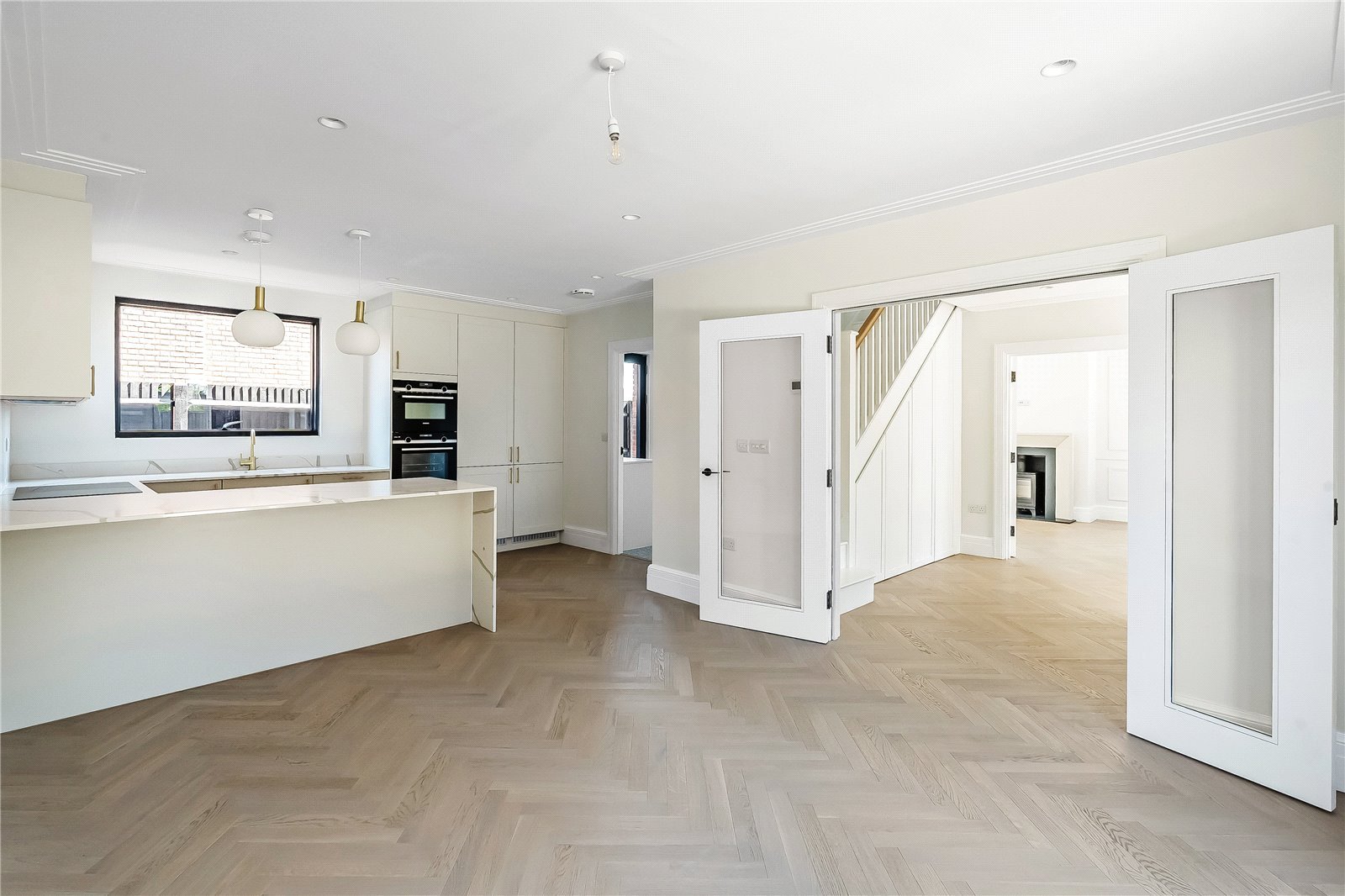 Passing through a set of glazed doors and into the kitchen/ dining area, the first element you will notice is the high ceilings, bespoke cornicing, and clever hidden LED accent lights that provide a wonderful wall wash of warm ambient light.