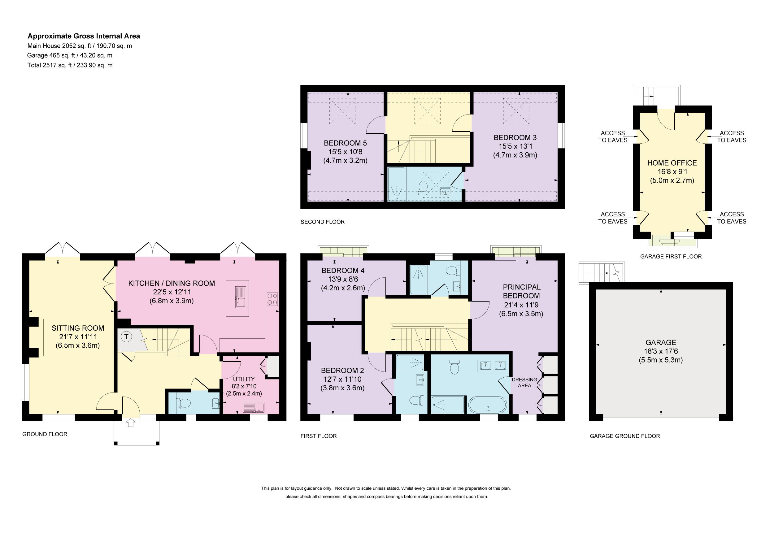 Also on the first floor is the 2nd bedroom suite with en suite shower room, a study or bedroom 5. A secondary staircase leads to the second floor landing with two further double bedrooms with one en-suite shower room. The second bedroom on this floor has also been designed with a dual purpose of a media room, should you wish.