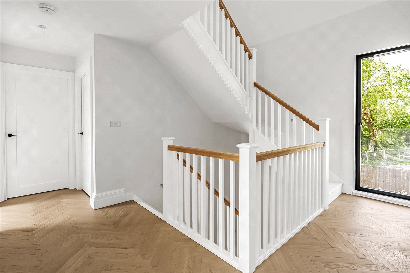 A turning staircase with a half landing enjoys a superb picture window and then continues up to the galleried landing. This wonderfully bright space enjoys uninterrupted natural light from the landing and the roof lantern above.