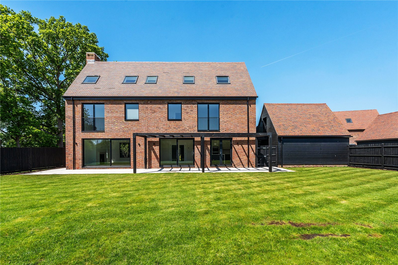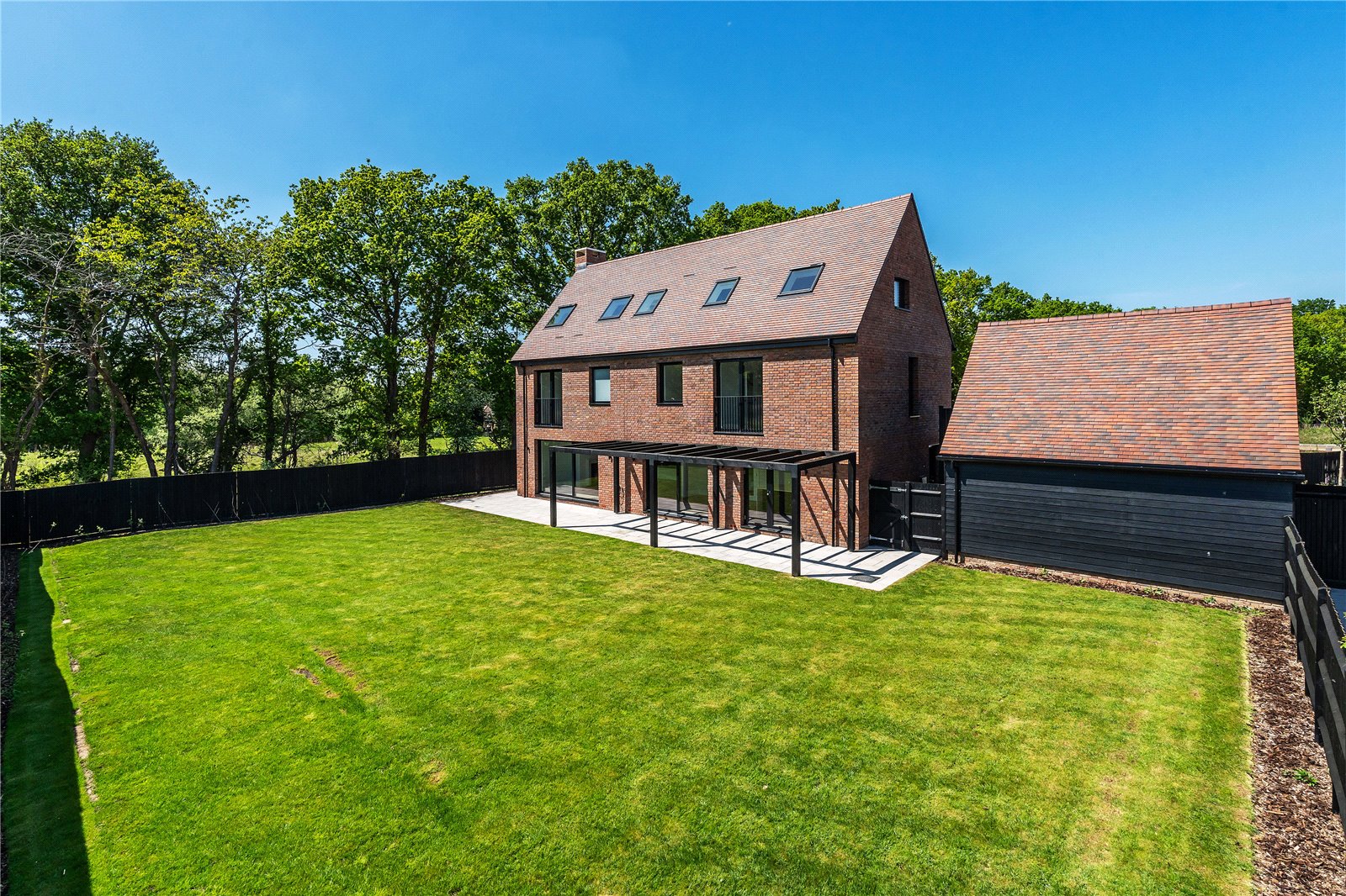 The rear gardens are westerly facing, with an extensive garden terrace that provides an excellent seating and alfresco dining area, whilst looking out across the lawn garden.