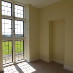 Double bedroom with tall south-facing windows directly overlooking the gardens and distant views. Recess for wardrobe. TV point.