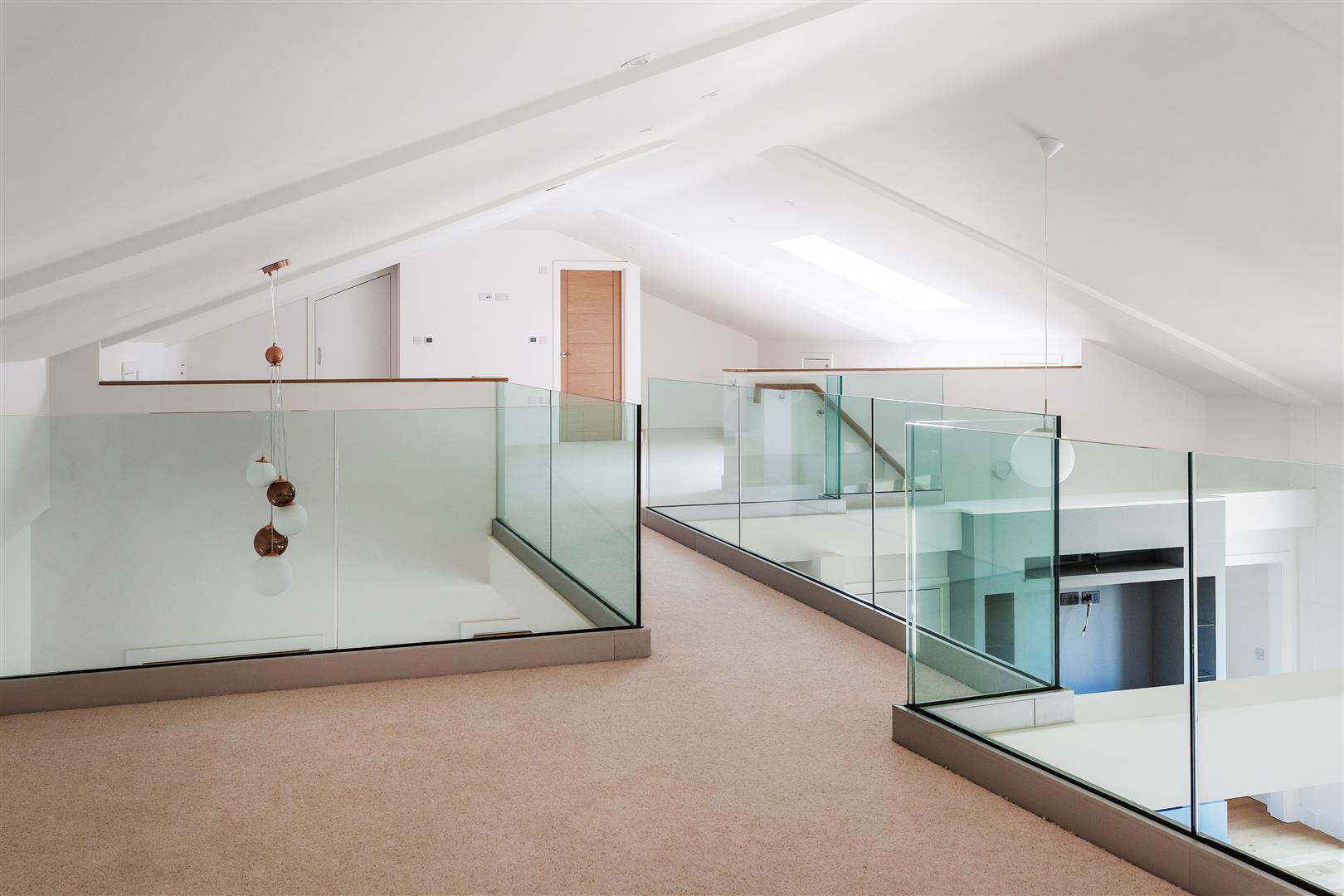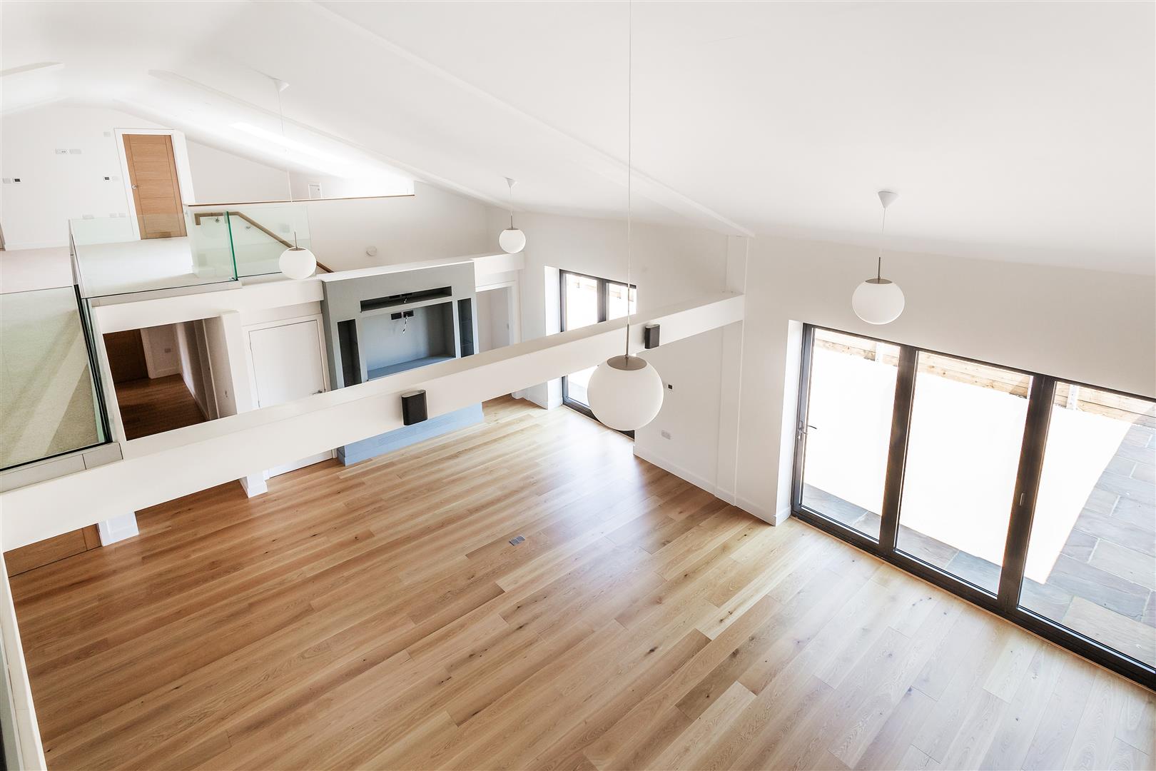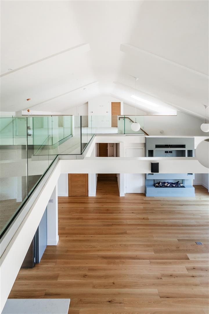 A brilliant mezzanine area with ample eves storage and an en-suite bathroom forms the principal bedroom. A glazed gallery leads you into a very useful study area or home office.