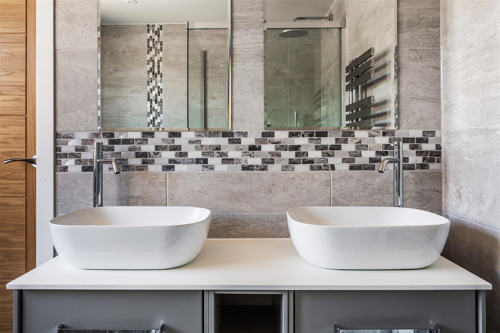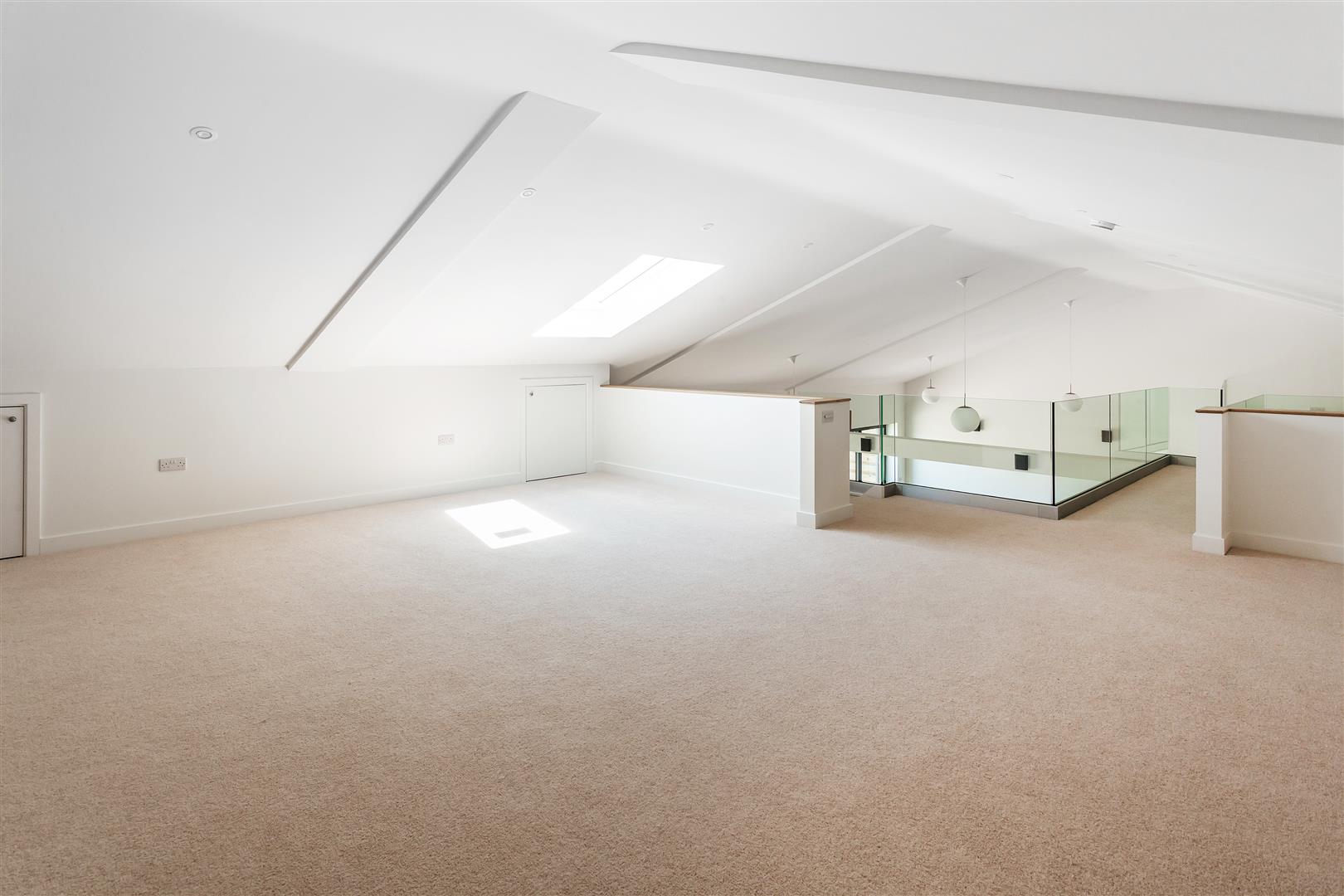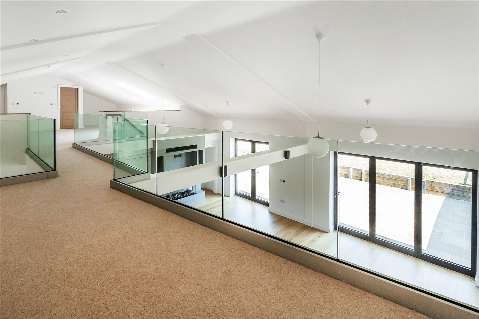 A brilliant mezzanine area with ample eves storage and an en-suite bathroom forms the principal bedroom. A glazed gallery leads you into a very useful study area or home office.