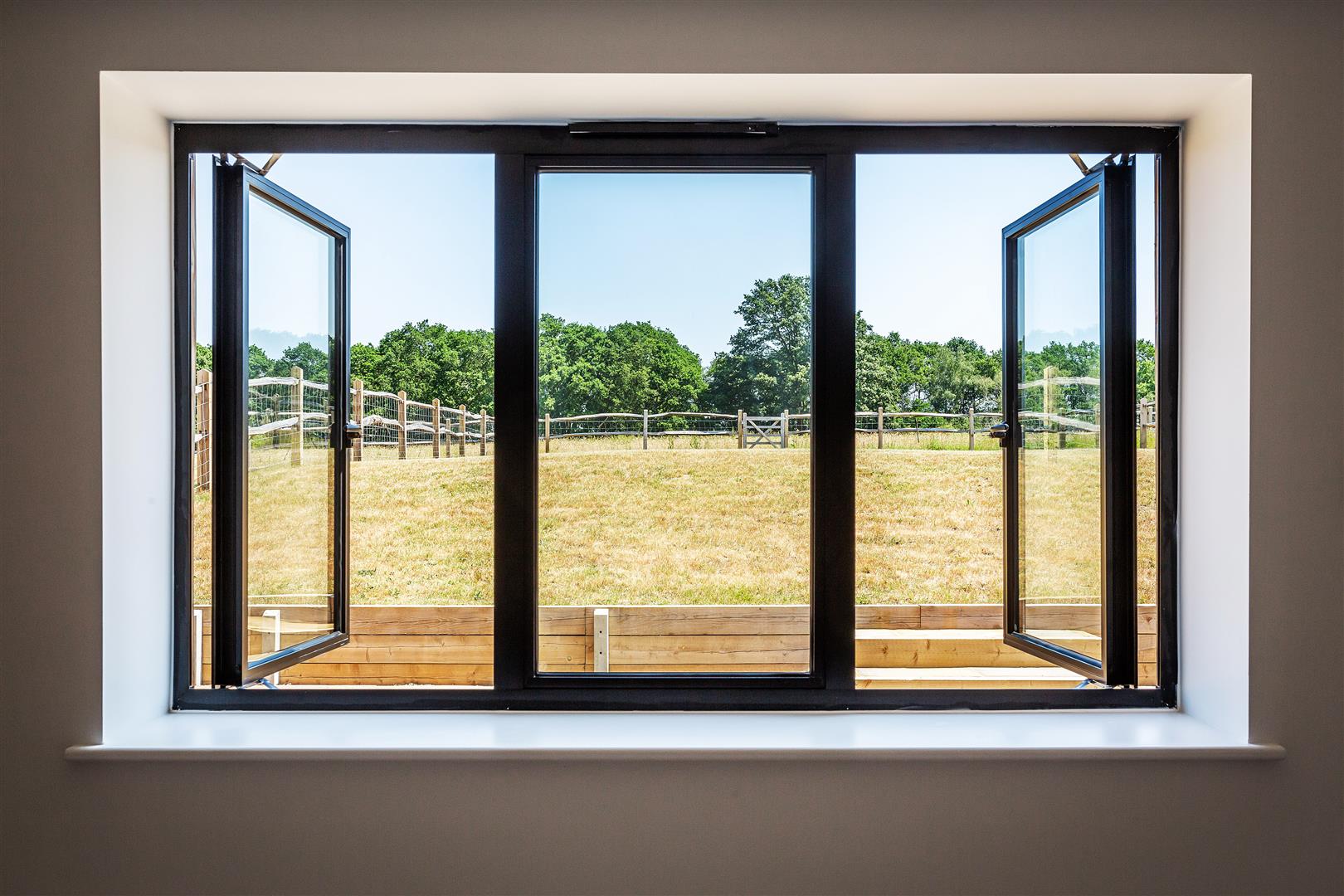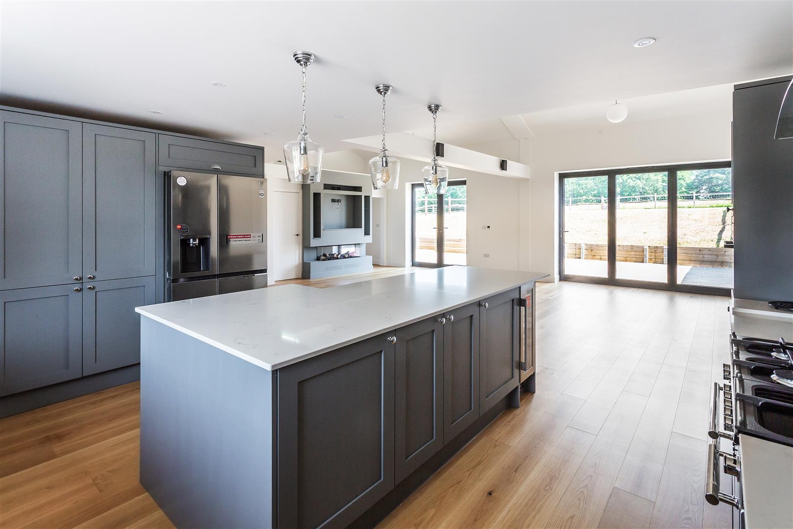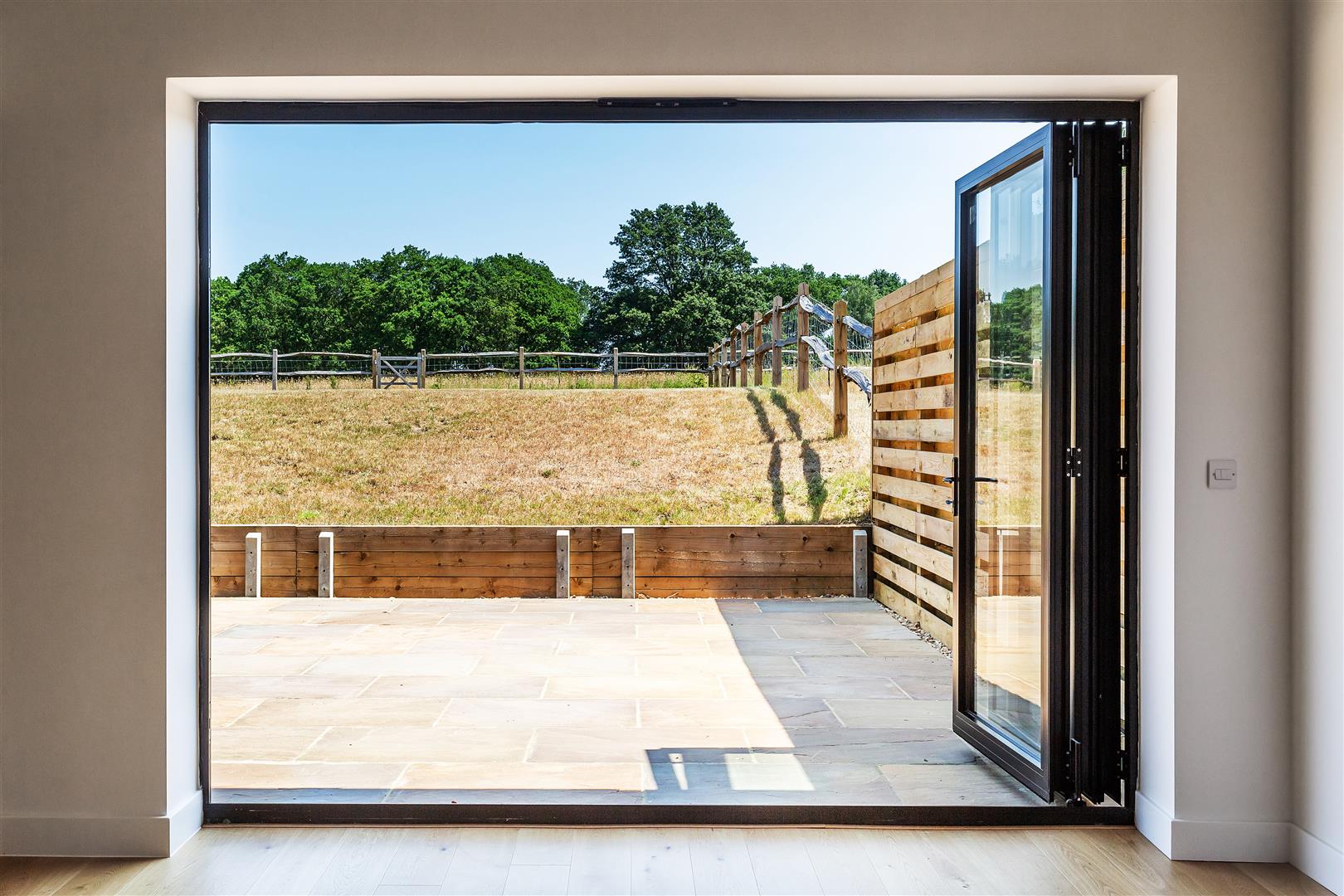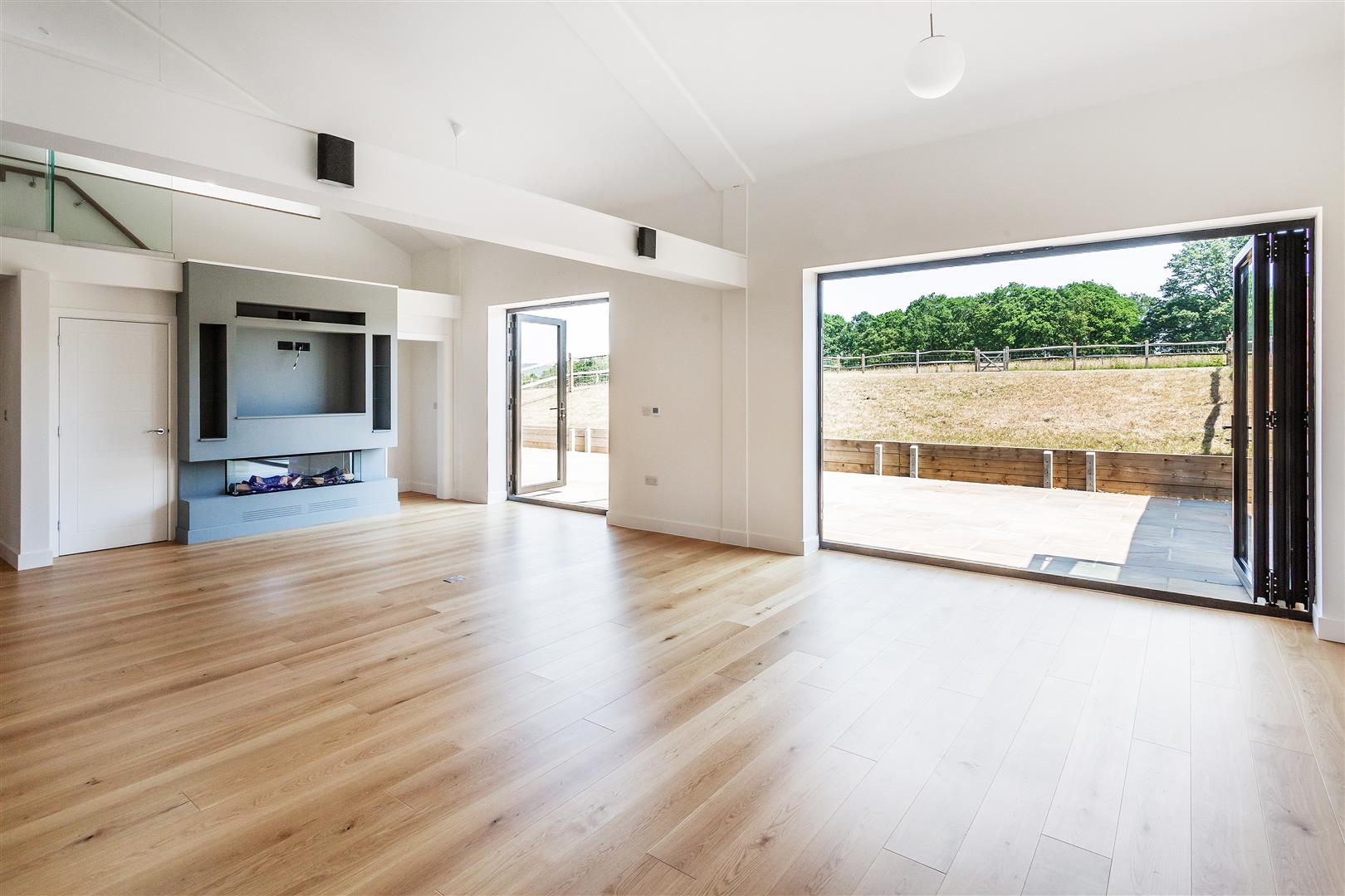 A modern and contemporary entrance door gives way to an airy and bright reception hall. From here you are drawn to the main open plan living space, with triple height vaulted ceilings, and the most wonderful rural outlook via twin sets of bi-fold doors. This main living space is cleverly created to maximise the sense of light and space. To the front is a beautifully appointed fitted kitchen.
