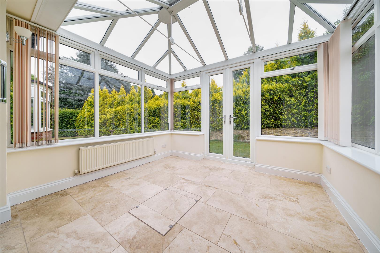 The front door opens into the hall, from there is a large living room with bay window and gas fire, open plan kitchen with breakfast bar and appliances, including and American style fridge/freezer. From the kitchen is a south facing conservatory and a separate utility room.