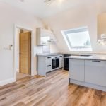 Video entry phone system to communal entrance hall, stairs lead to the second floor. Front door opens to the open plan kitchen living area. Large velux window provides lots of natural light and a roof top view. The kitchen includes, induction hob, electric oven, slimline dishwasher, washer/dryer and fridge. Store cupboard. Cabling for satellite.
