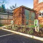 Solar panels, electric heating and air cooling system, private resident parking, electric car charging point, secure bike store, communal outside seating area.