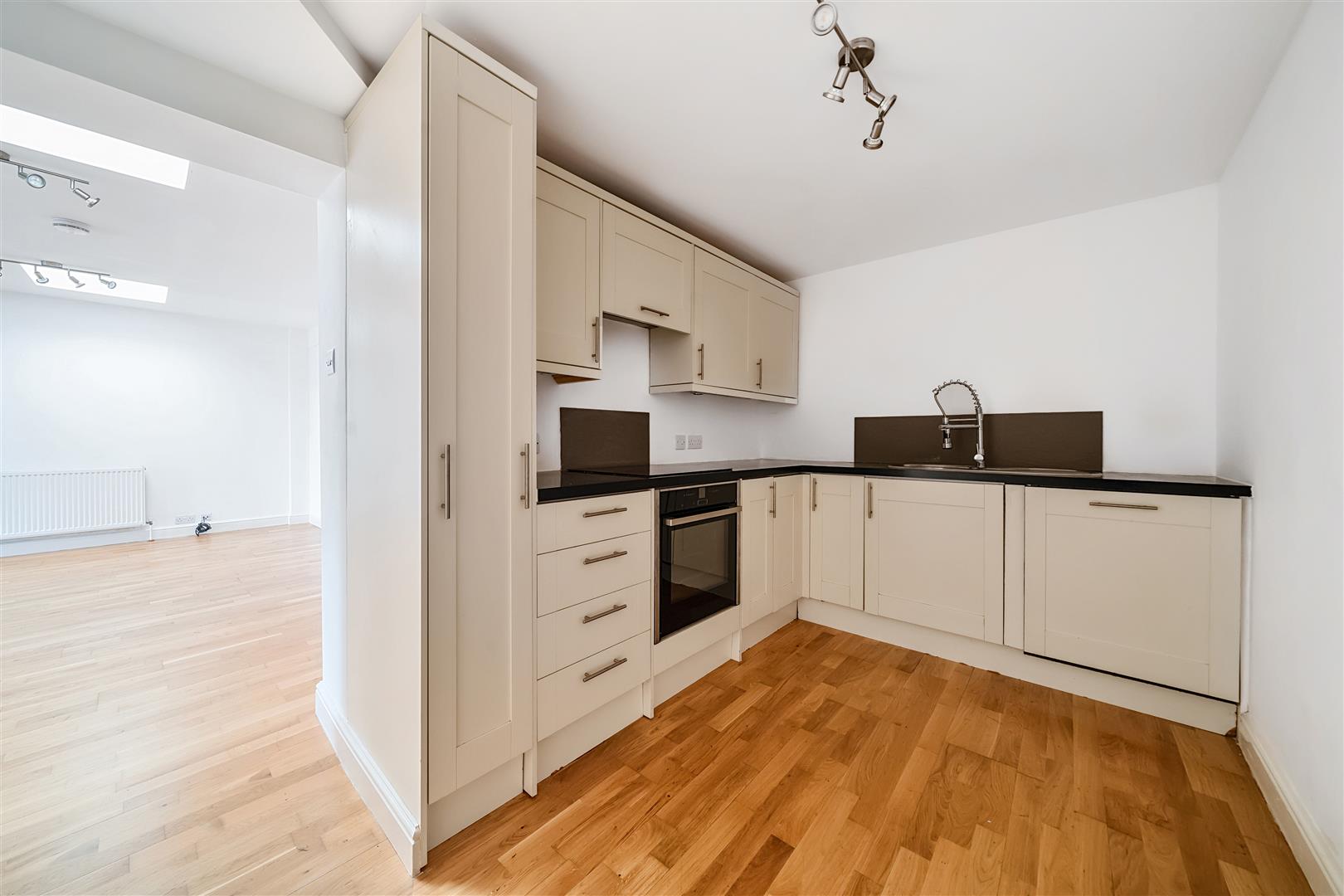 The property features two bedroom one with direct access to small courtyard, modern kitchen, large reception room with skylights and spacious shower room.