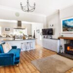 The ground floor is mainly made up of the wonderful kitchen/dining/family room with a well fitted kitchen, a wood burning stove and wonderful views to the front across the common.