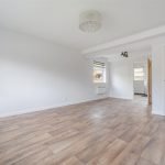 Front door to entrance hall. New kitchen comprising electric oven and hob and fridge freezer, with door to rear garden. Spacious and light double aspect reception room. Modern bathroom suite with shower over the bath. Two good size double bedrooms both with fitted cupboards.