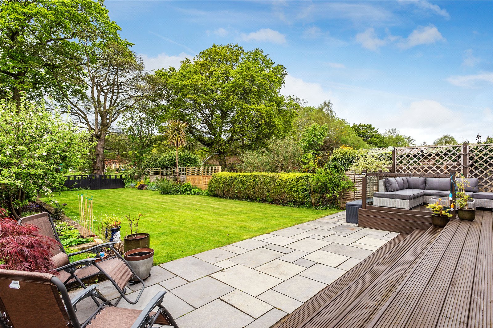 - Large, raised garden deck
