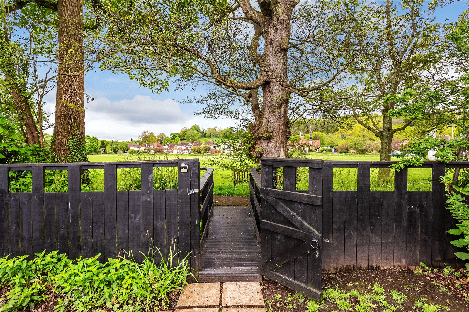 The property sits back from the road with a private driveway and parking for two cars, plus on road parking if required for guests/visitors. The rear garden enjoys a westerly aspect with a delightful, raised deck spanning the width of the house. The main garden is laid to lawn, edged with mature flower bed boarders, a herb/vegetable patch, three apple trees, a row of late bloom raspberry bushes - annual apple and raspberry harvests are plentiful - and two timber-built garden sheds. Towards the rear of the garden is a small gate and bridge which provides access to the cricket green and footpath to the village centre.