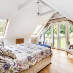 The master bedroom with double doors and Juliet balcony enjoys stunning views over the farmland, with en-suite bathroom/shower room and fitted wardrobes. Across the other side of the bridge are two further double bedrooms with built in wardrobes and matching double doors, one with Juliet balcony overlooking the gardens and farmland, A family bathroom services the two bedrooms and is cleverly fitted with modern lines and a contemporary feel.