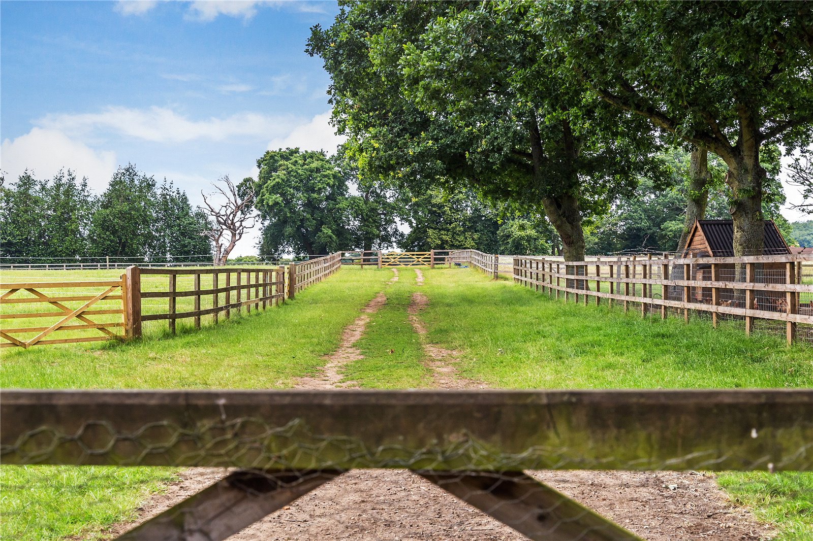 The remainder of the farm is set out neatly as post and rail paddocks, currently home to pigs, chickens and pedigree Charolais breeding cows and bulls.