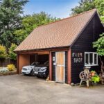 Pound Farm Lodge is accessed via double gates through to a sweeping driveway that leads to a large parking area providing for multiple vehicles and a detached double car port with mezzanine ancillary area above.