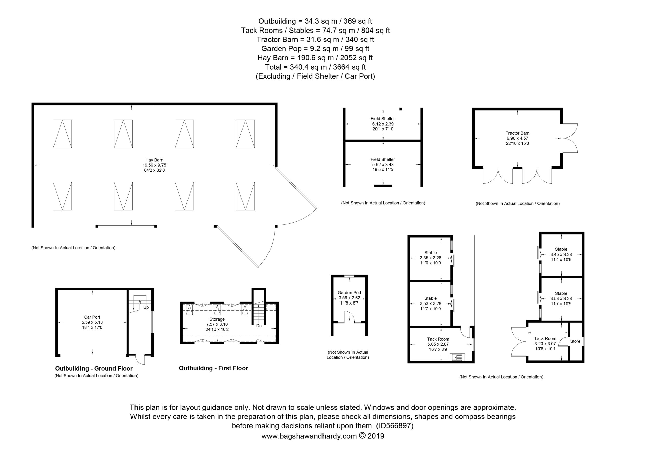 - Sand school, tractor barn, field shelters, hay barn r