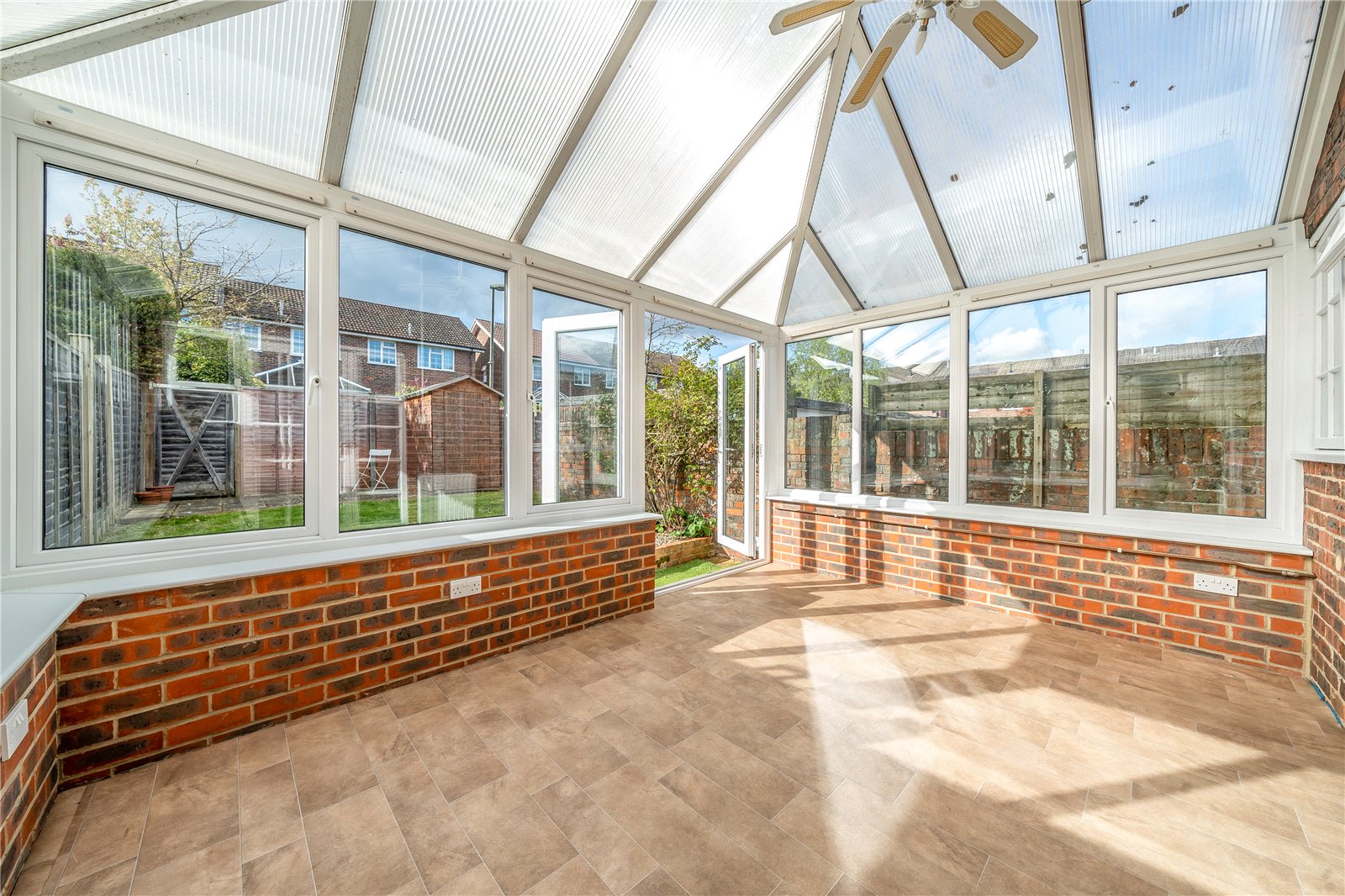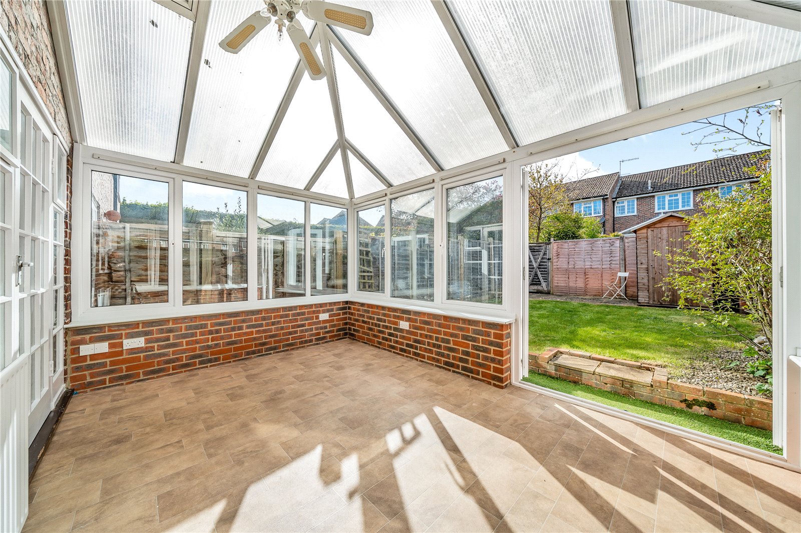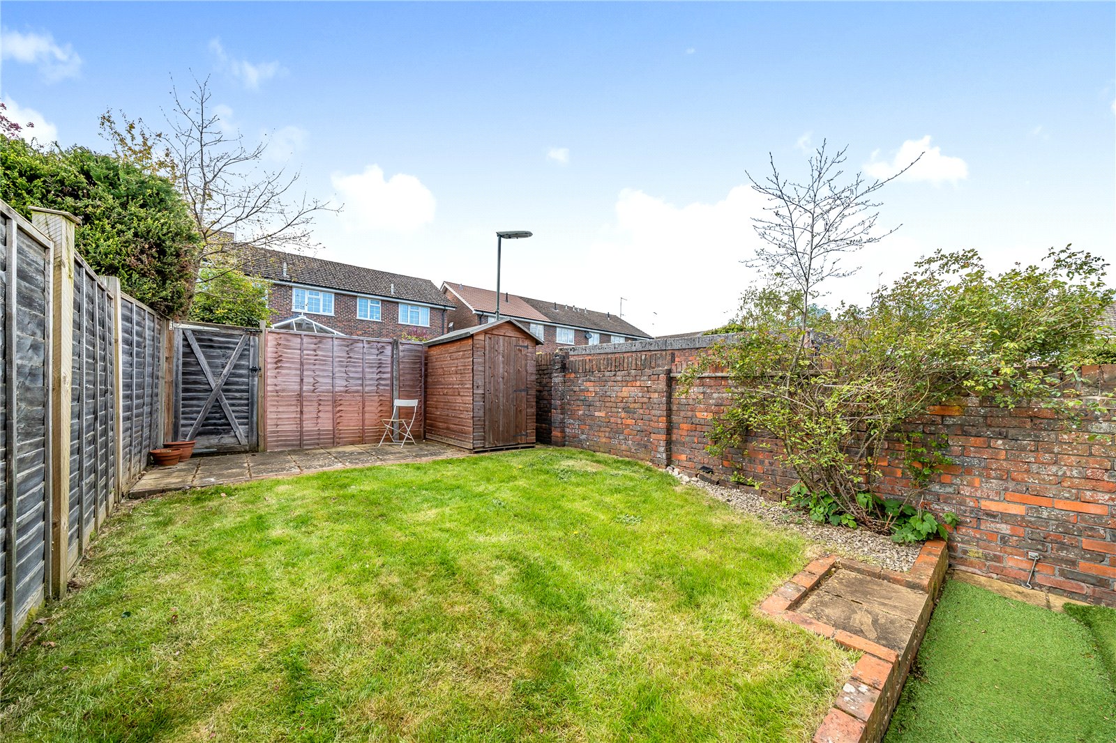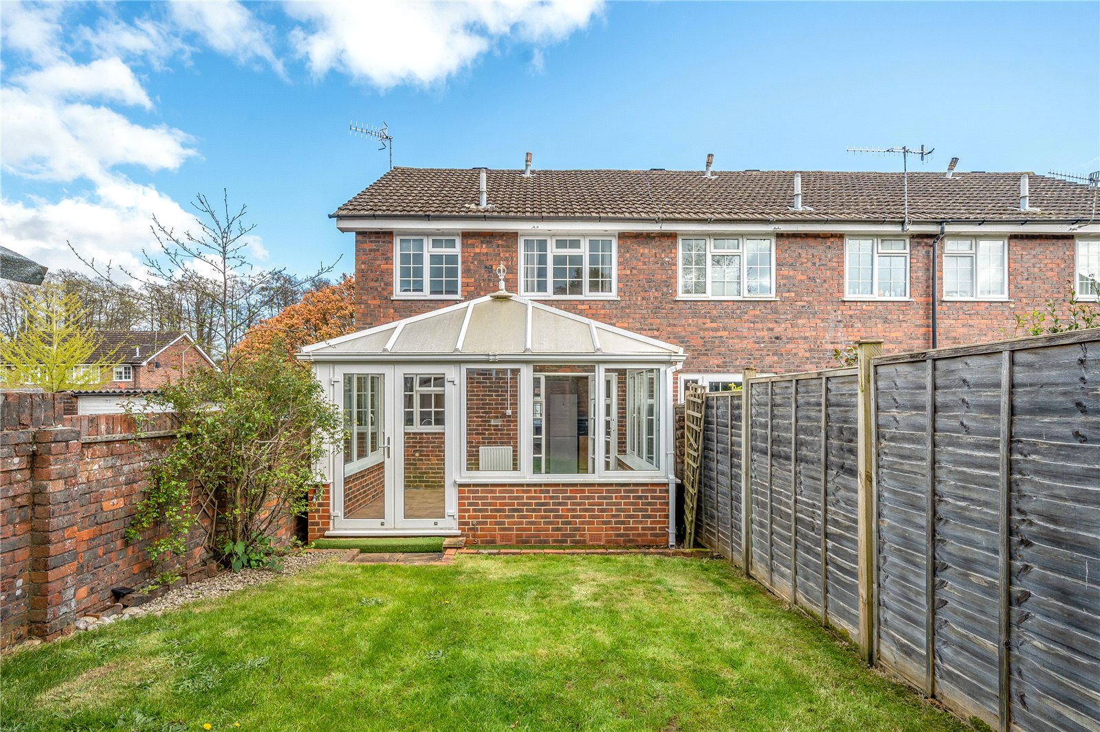 The ground floor consists of a lovely bright sitting room, downstairs W.C, fitted kitchen/breakfast room and a conservatory opening onto the garden. The accommodation upstairs offers three bedrooms; two doubles, both with built-in wardrobes and a single, ideal for use as a home office. There is also a family bathroom with a bath and a separate shower cubicle. Outside there is a pretty garden with a small wooden shed. The property also benefits from a single garage and parking immediately outside, or in designated visitor parking bays.