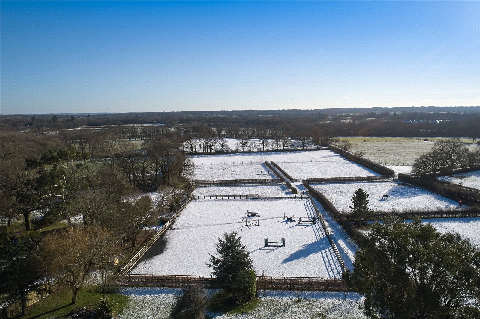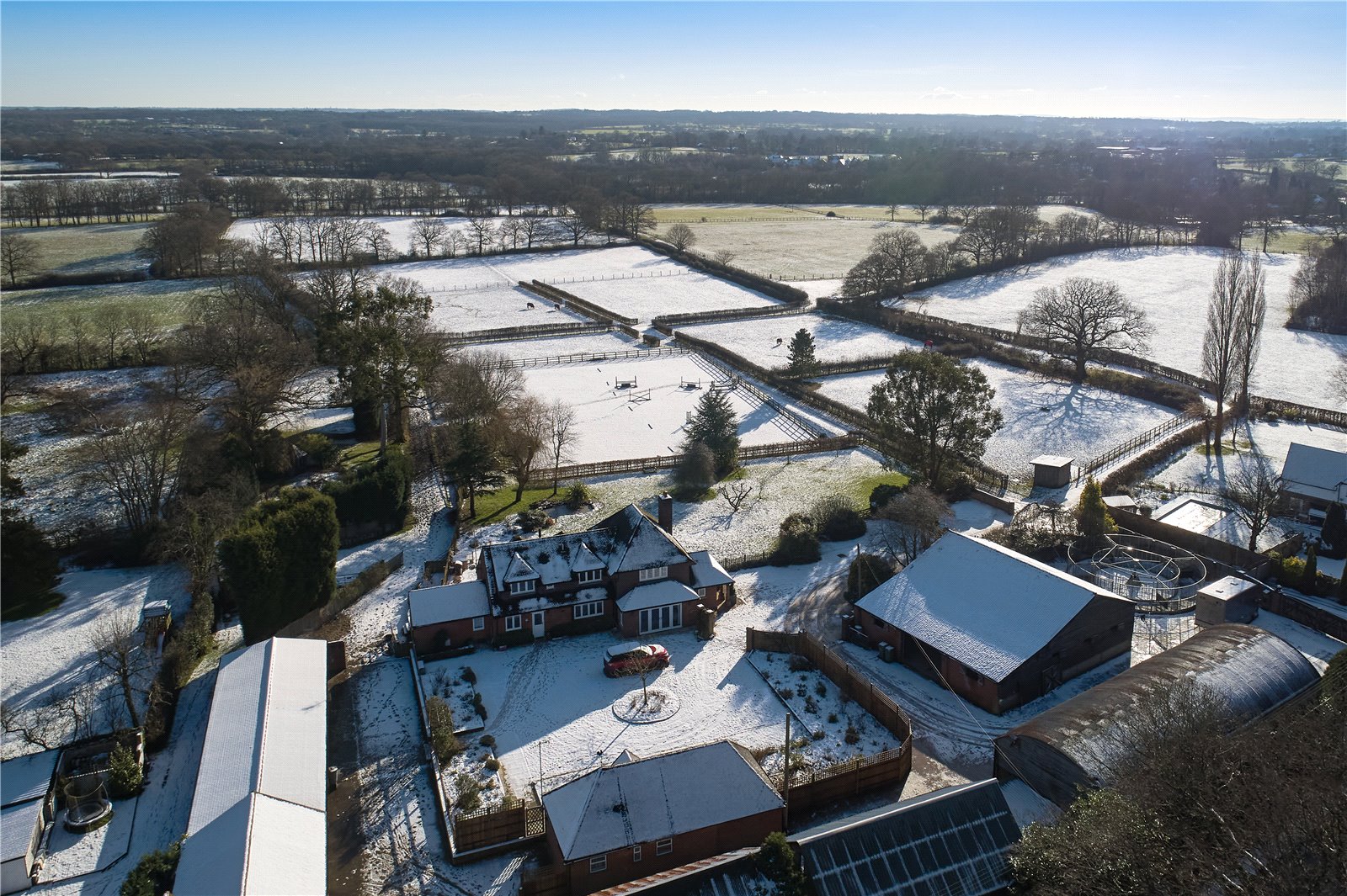 Springfield Farm offers all that the equestrian facilities a person would ever need, with excellent hacking right on your doorstep. If competition is more your style, then the school and gallops offer you exercise facilities in all weather conditions. This is a well-presented family house with good, proportioned rooms, light, airy and affording views of your grounds and paddocks from most areas of the house.