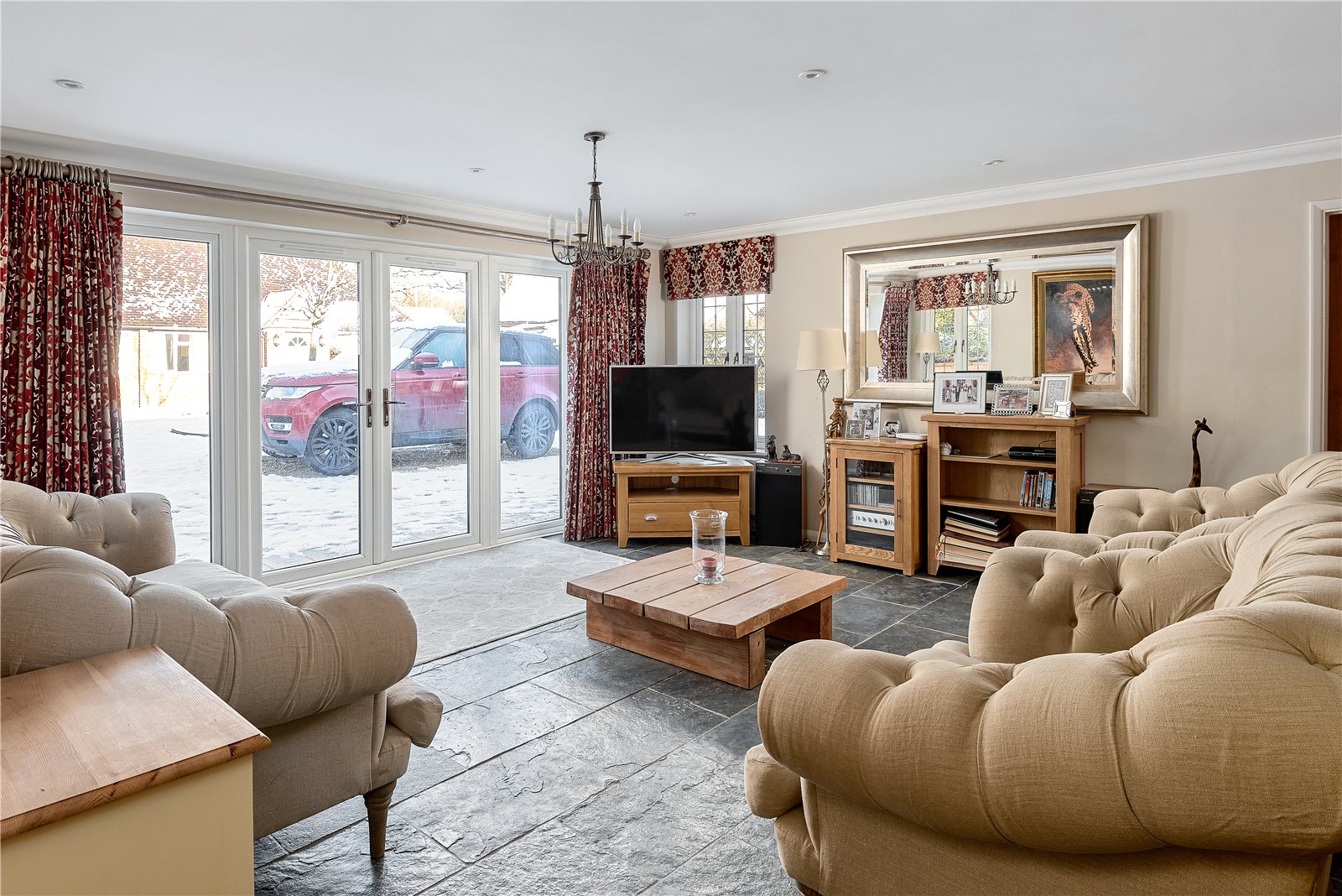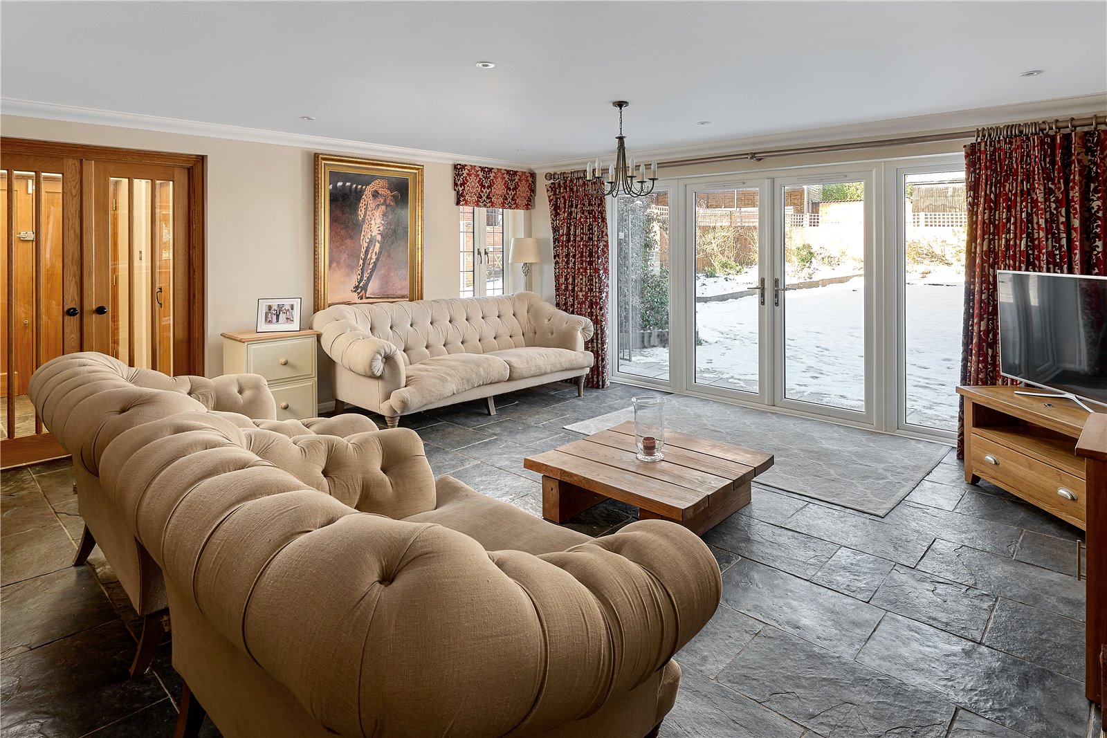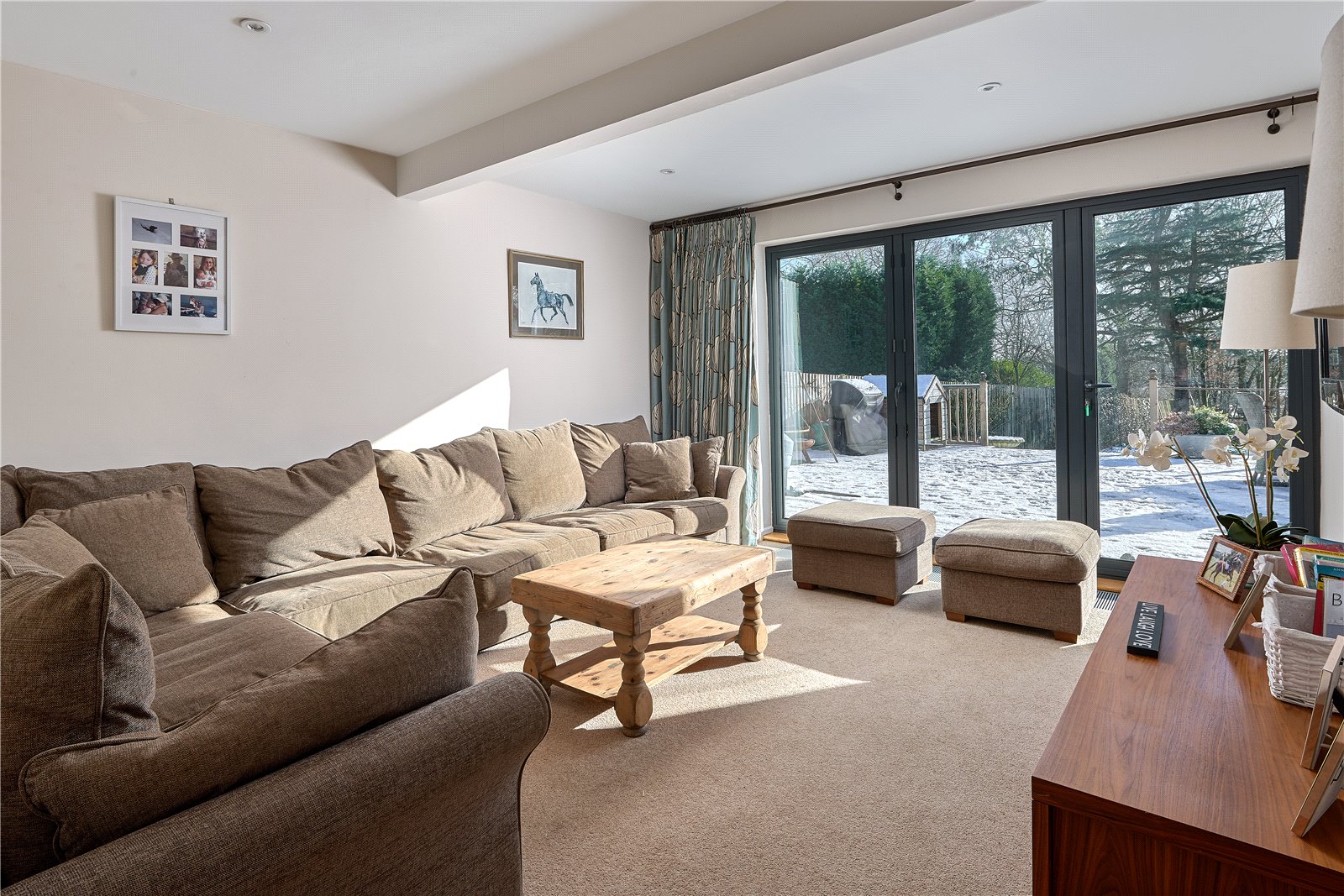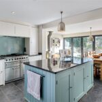 - Bespoke handmade kitchen with breakfast room area and bi-folding doors onto an elevated terrace