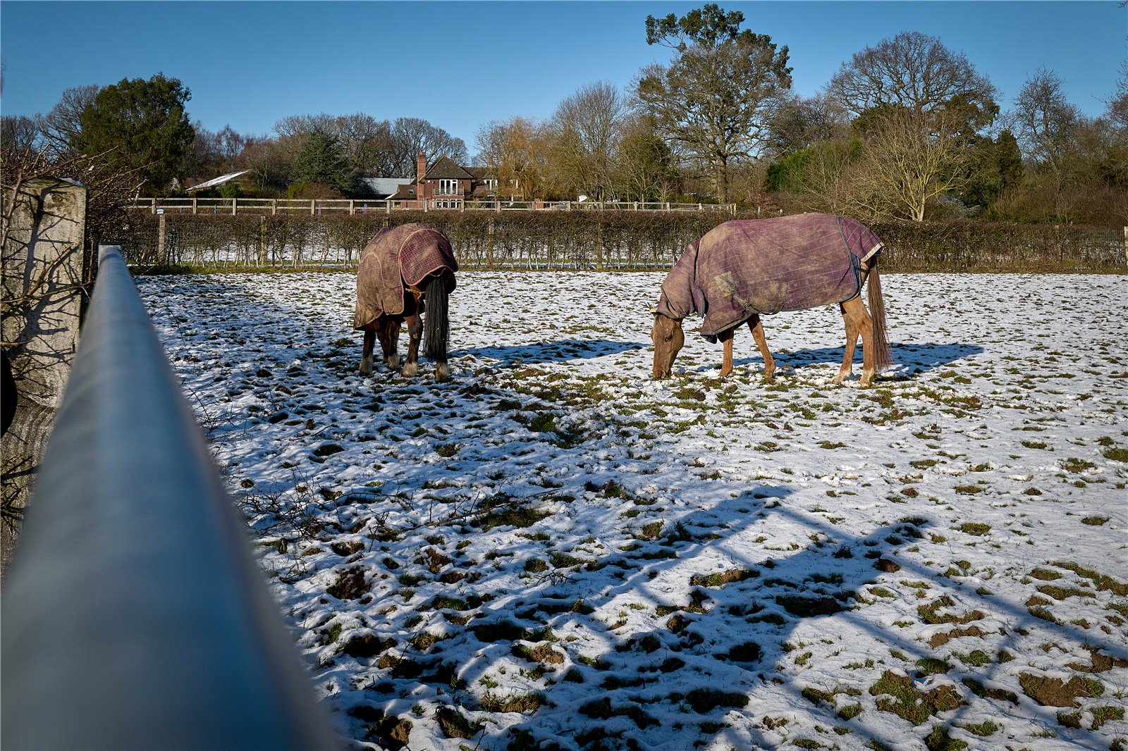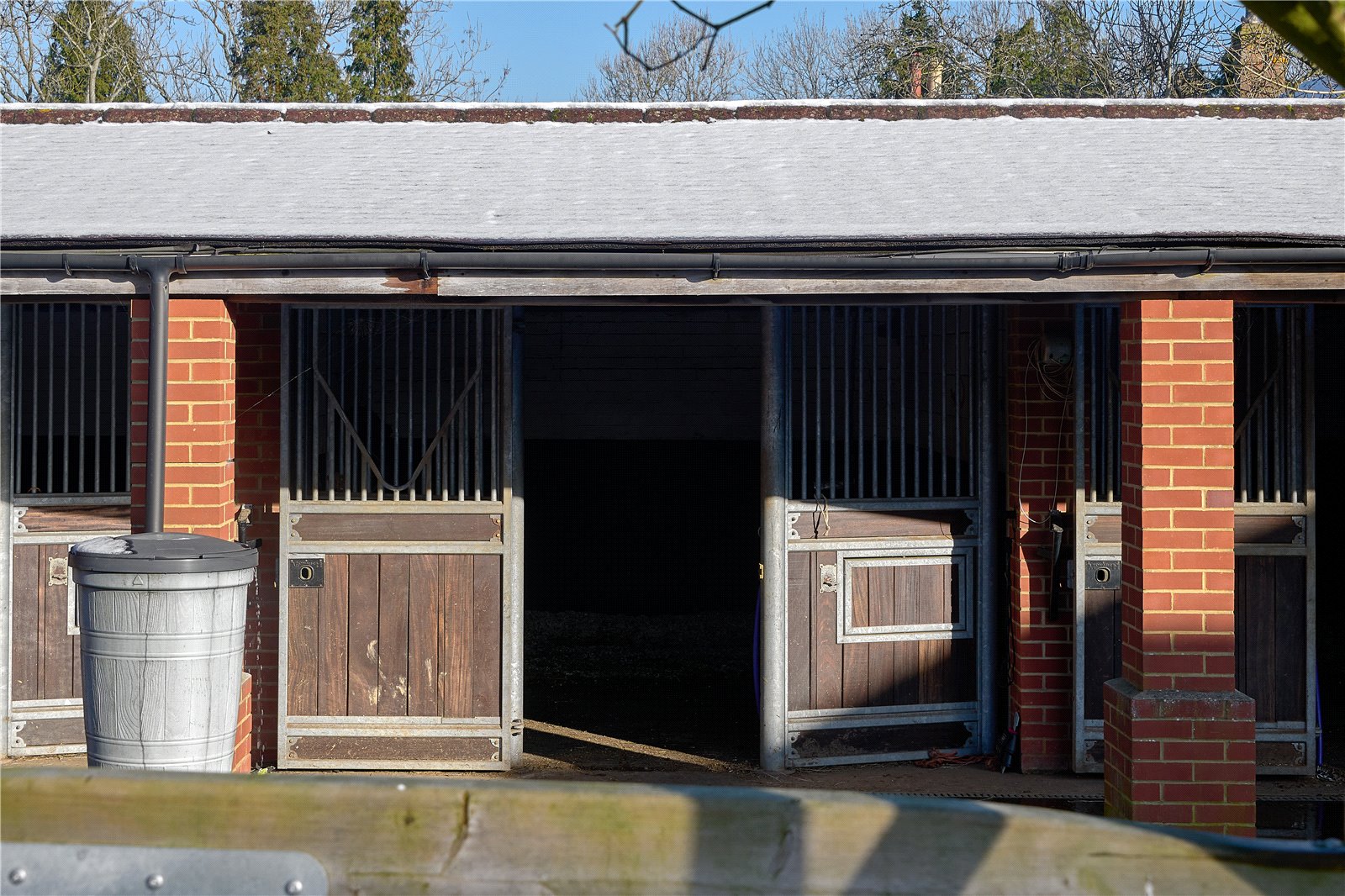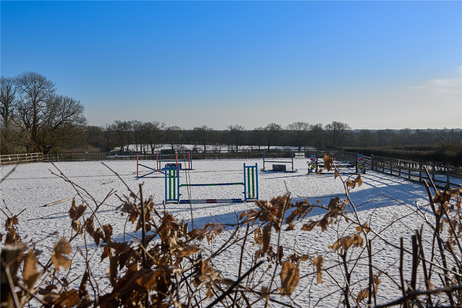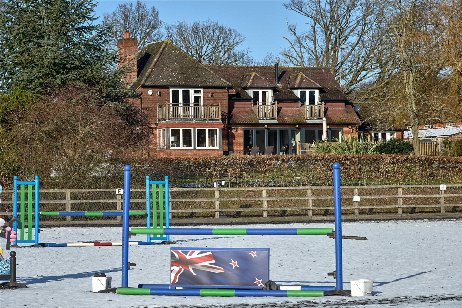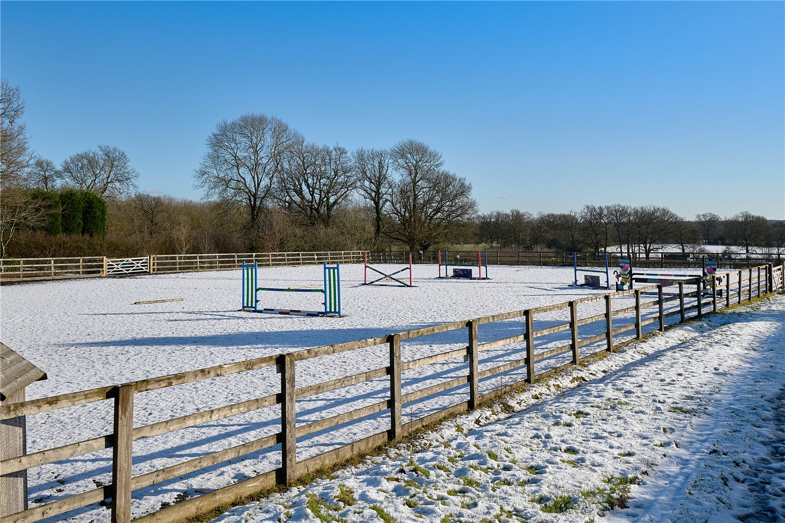 The grounds are in all about 22 acres, split into goods size paddocks and fields with excellent post and rail fencing. Several the paddocks have self-filling water troughs. The all-weather gallops are ideal for exercising, along with the 60m x 40m menage.