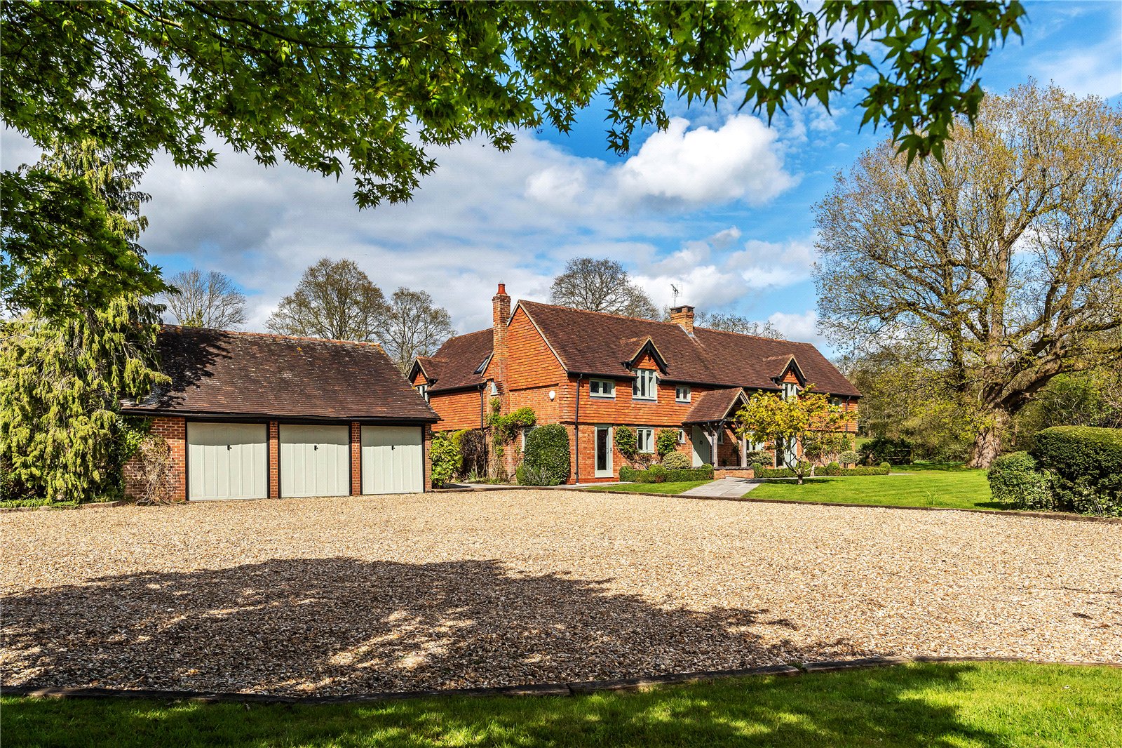 Pigbush Lane occupies a delightful semi-rural position on the fringe of the charming village of Alfold, surrounded by beautiful Surrey countryside. Alfold itself offers a quintessential village setting, with a popular village green, historic church, 100 yards from the well-regarded Sir Roger Tichbourne, and a strong sense of community, making it particularly appealing for families and those seeking a more relaxed pace of life.