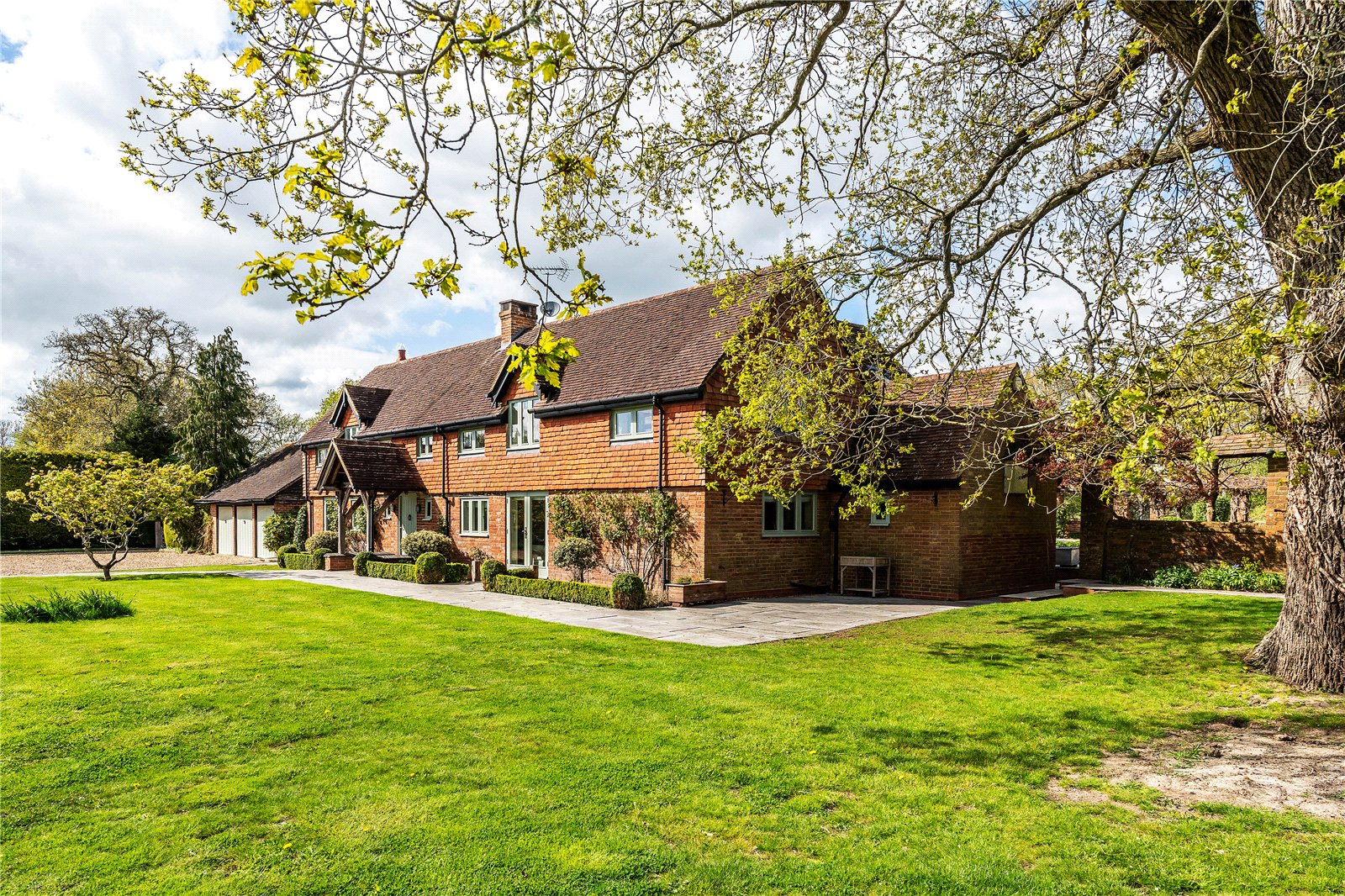 The formal gardens are beautifully established, predominantly laid to lawn and interspersed with well-stocked herbaceous borders and vibrant seasonal planting. To the rear, an expansive terrace provides an ideal setting for al fresco dining and entertaining, overlooking the gardens and beyond.