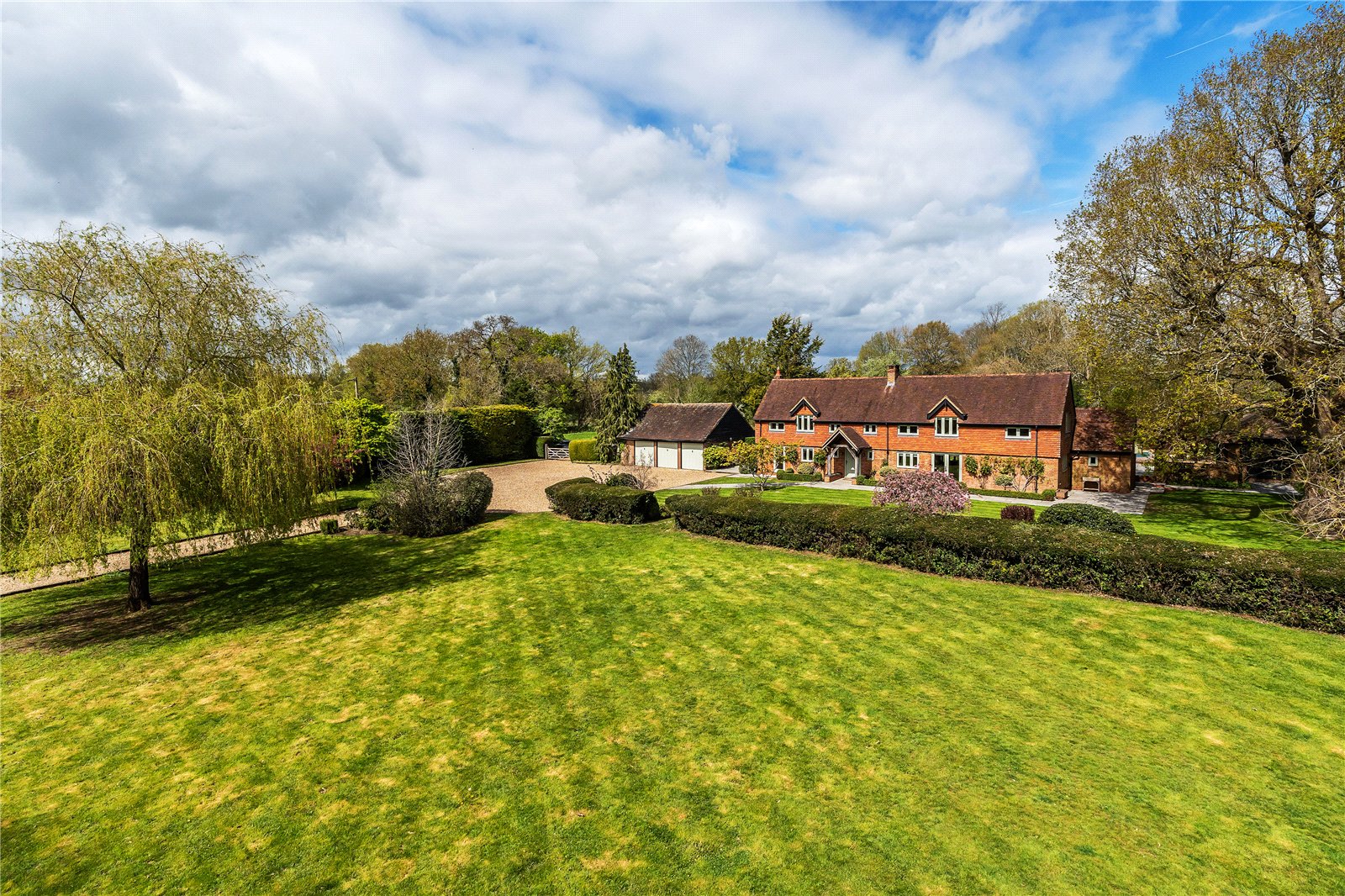 £2,950,000 Guide PriceA distinguished country residence in the heart of the Surrey Hills, timeless architecture, exquisite craftsmanship, and modern refinement. Private parkland setting just minutes from Godalming and Haslemere. In all 3.5 acres5 Bedrooms5 Bathrooms5 Receptions5 Bed 5 Bath