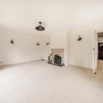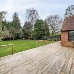 Double aspect sitting room with open fireplace and patio doors opening onto the decking area, overlooking a large rear garden.